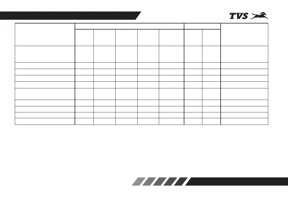 Front fork oil – – – – – – – Replace every 18000 km