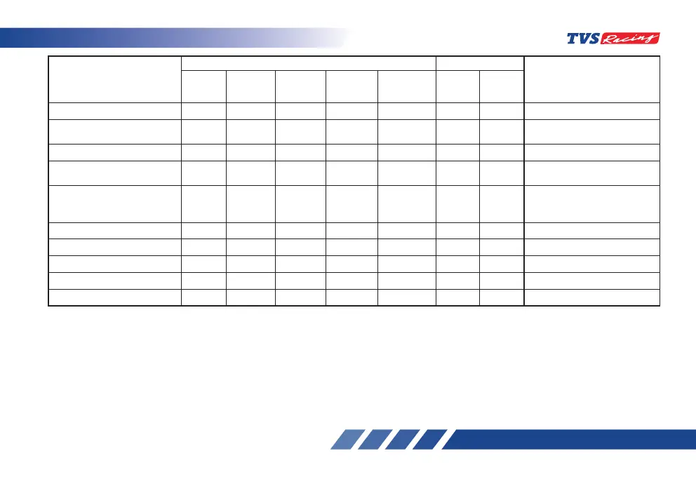 Front fork oil – – – – – – – Replace every 18000 km