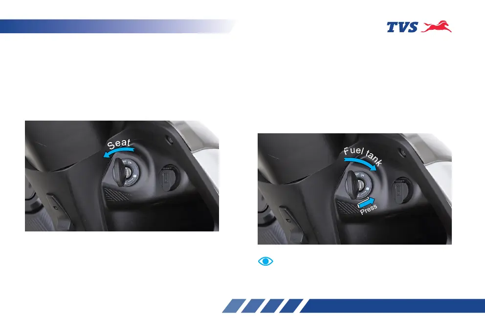 lock’ of TVS Jupiter 125. To open the fuel tank cap,