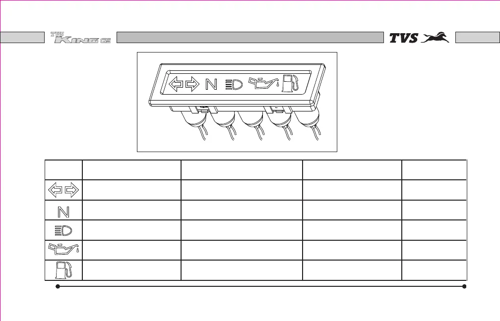 High beam indicator lamp Head lamp high beam is in ‘ON’ An indication signal Blue