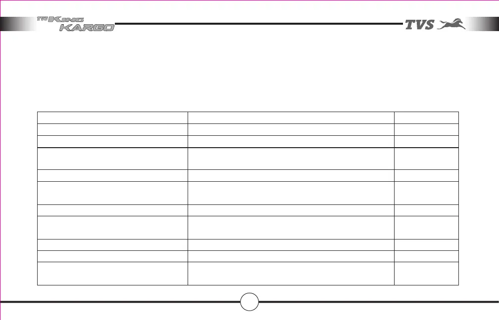 Tyres Correct tyre pressure, Adequate tread depth, No crack or cut 46