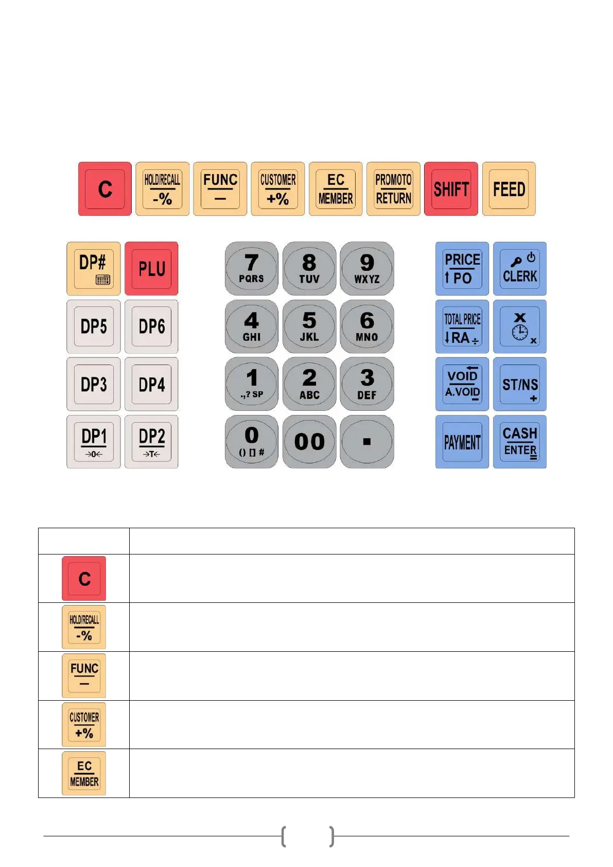 TVS PT262 - Keyboard Layout; Function Keys Description
