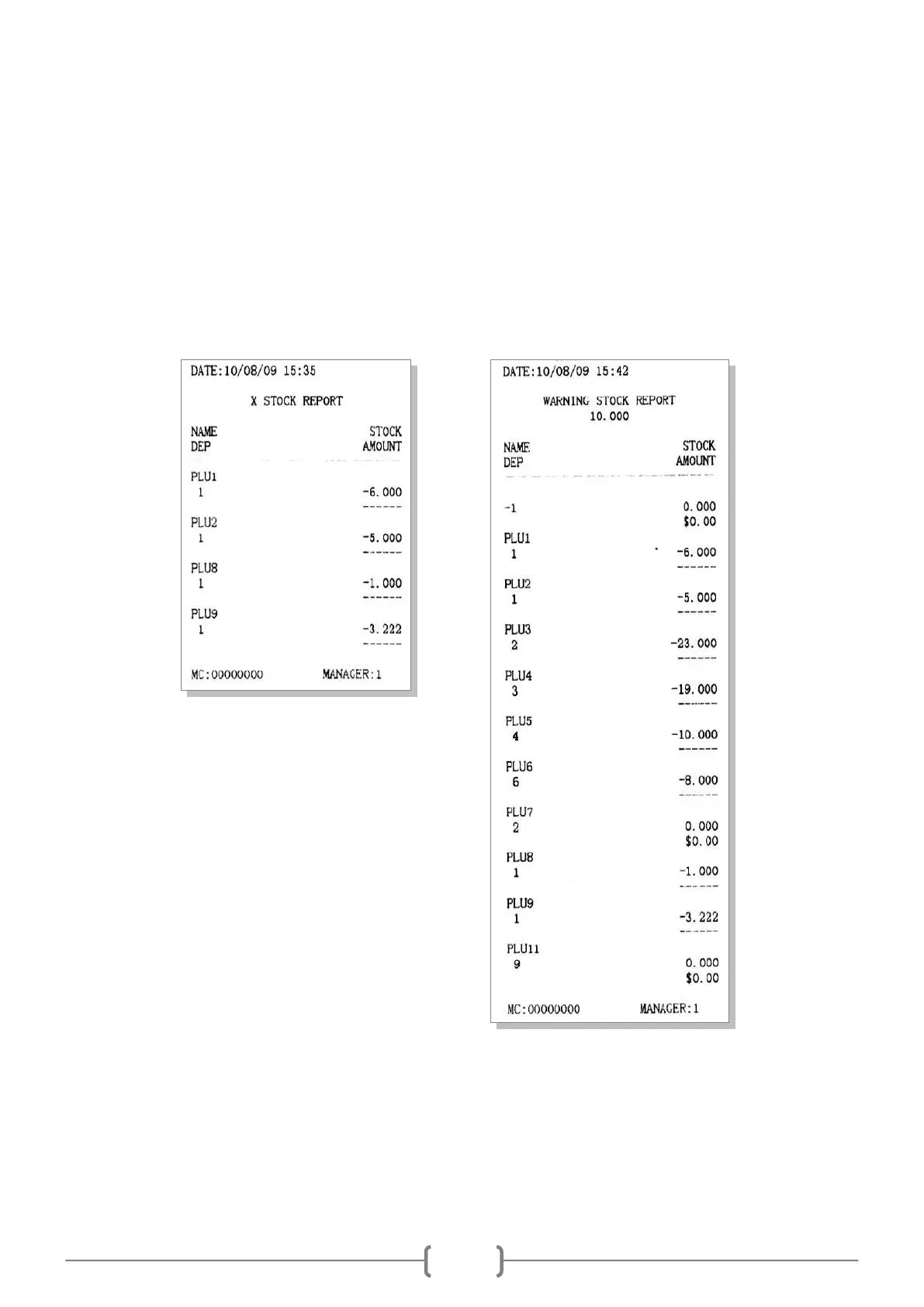 the warning stock as 10, than the ‗STOCK WARNING REPORT‘ will show you the PLU with stock under 10.)