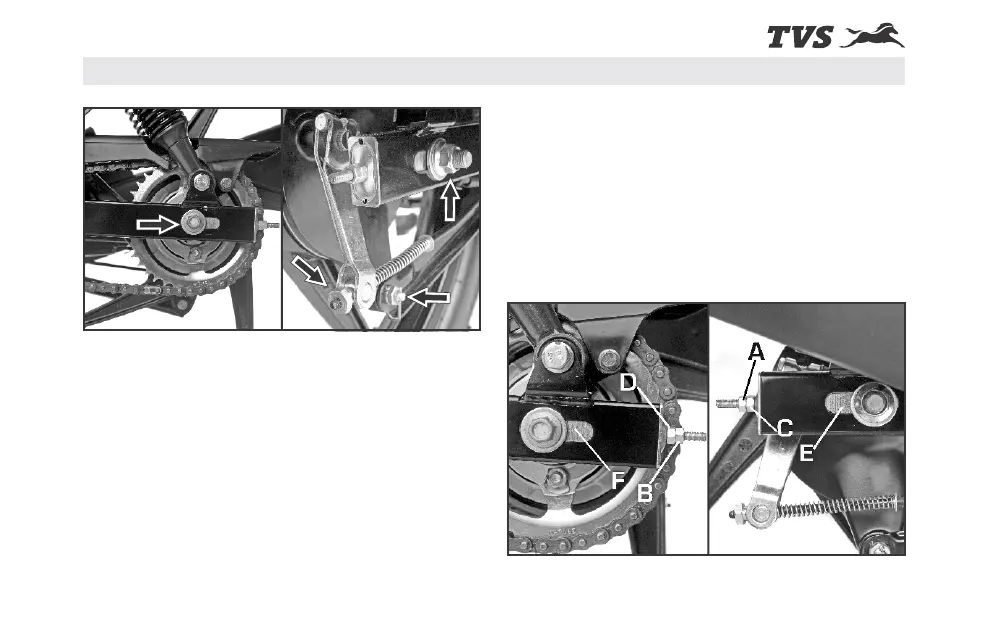 the chain adjusting nuts (C&D) on both L