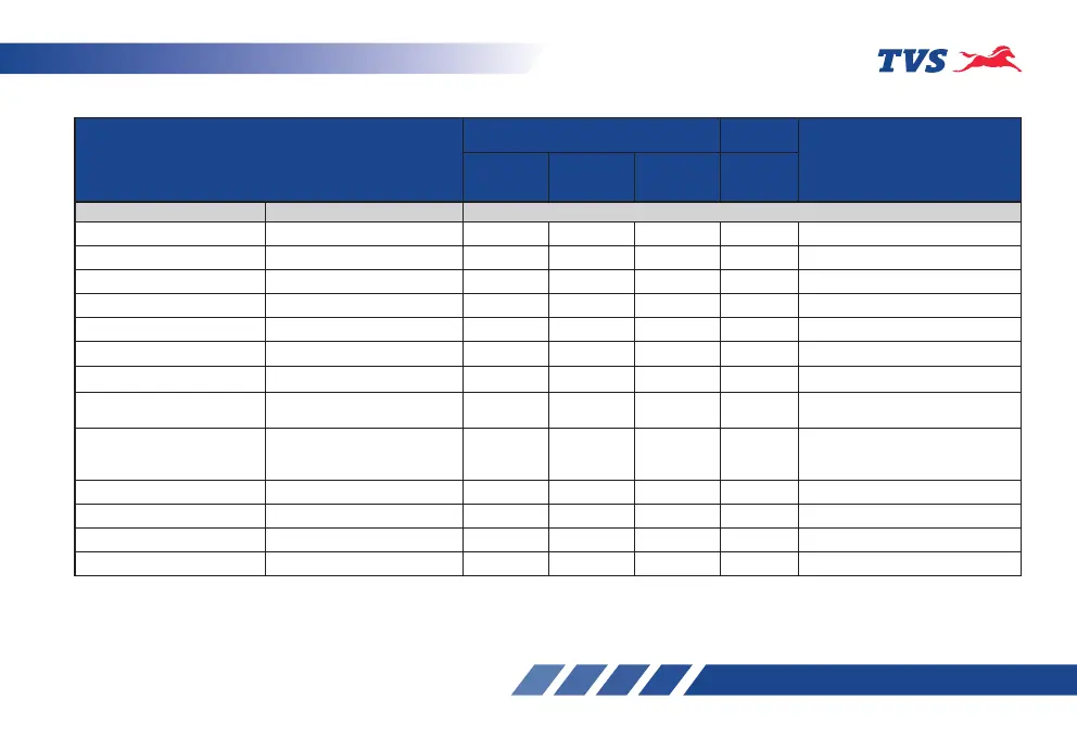 All fasteners Inspect and tighten I & TI I & TI I & TI I & TI