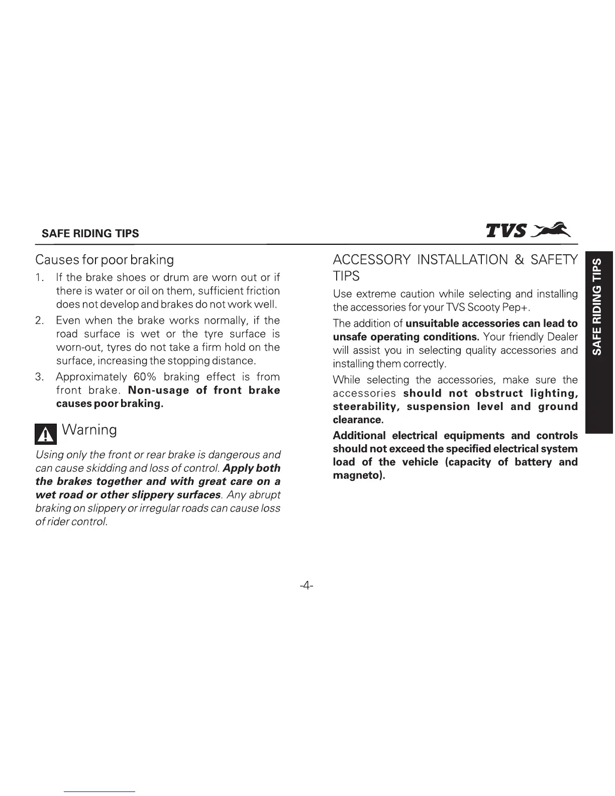 TVS Scooty Pep Plus - Causes for Poor Braking; Accessory Installation & Safety Tips