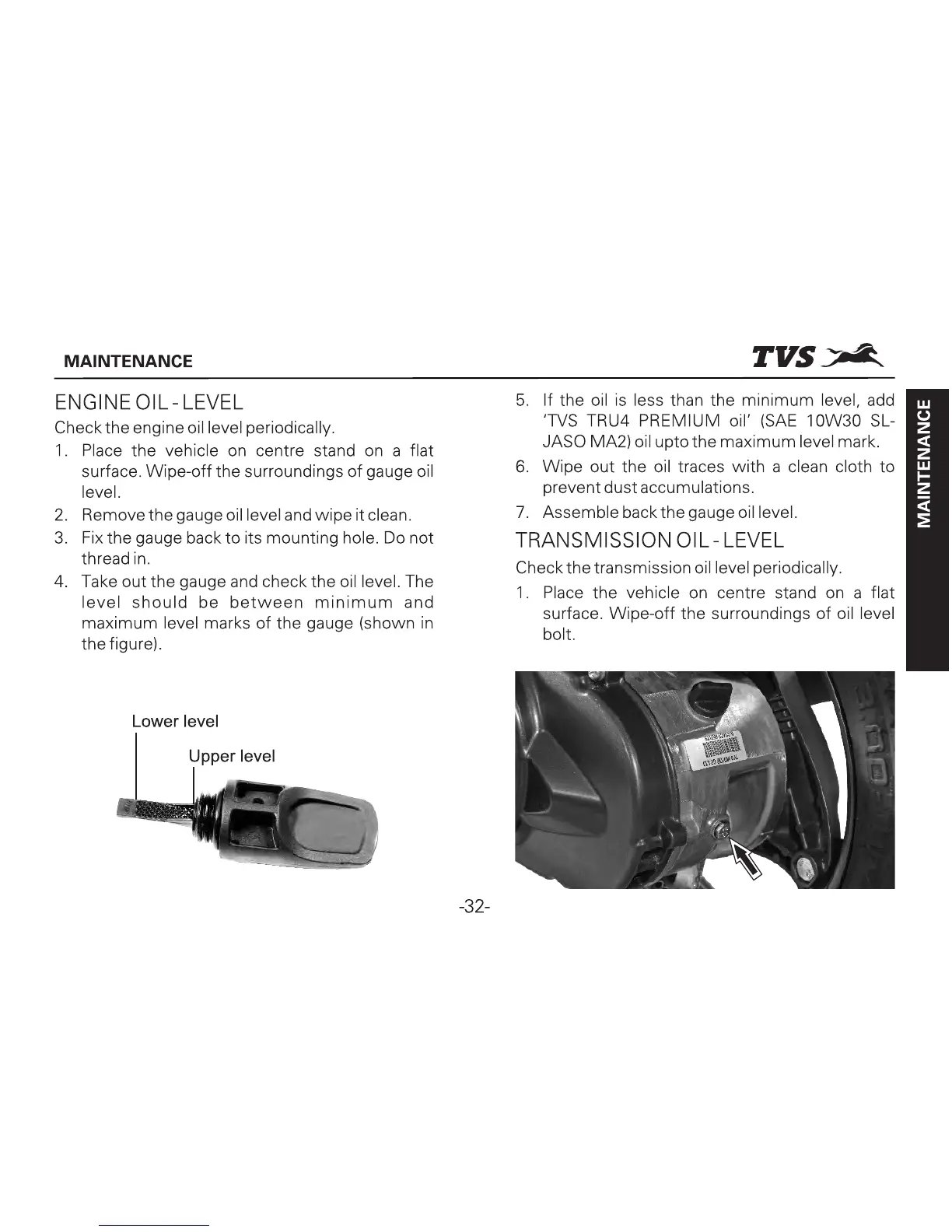 TVS Scooty Pep Plus - Engine Oil - Level; Transmission Oil - Level
