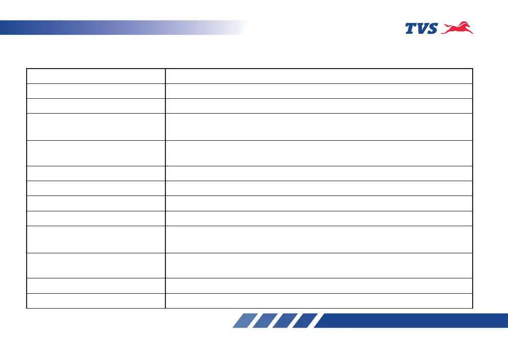 Battery Proper working of speedometer lamp, tail lamp, license plate lamp, brake