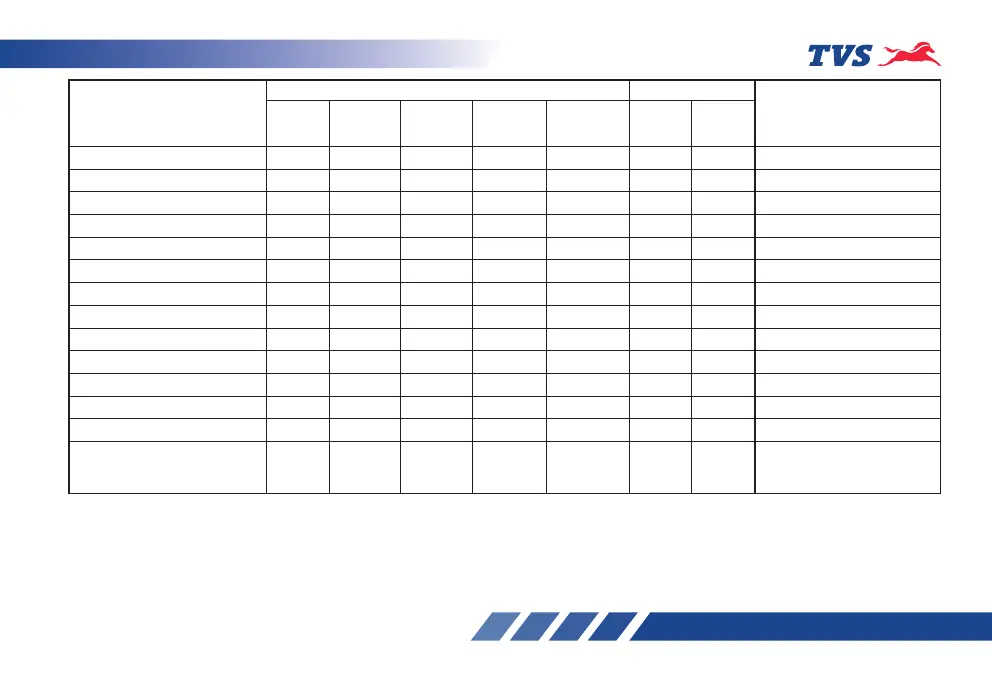 Brake fluid** I & T I & T I & T I & T I & T I & T – Replace every 21000 km