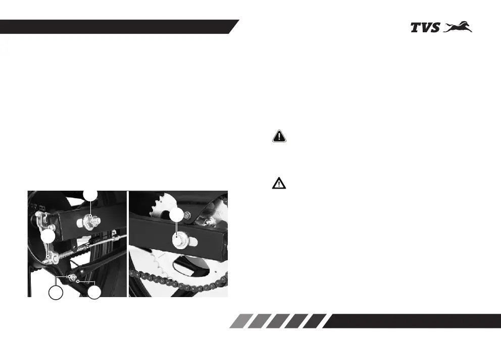 1. Remove the rear brake adjuster nut (1) and