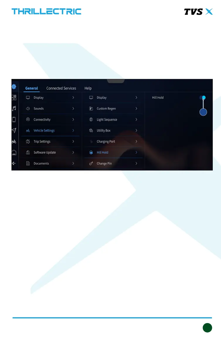¾ Under vehicle setting menu navigate to the hill hold menu.
