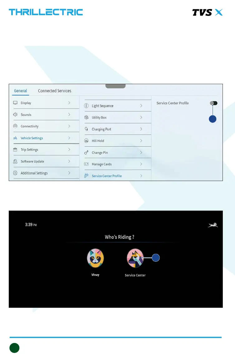 ¾ Under vehicle setting menu navigate to the Service Center Prole menu.