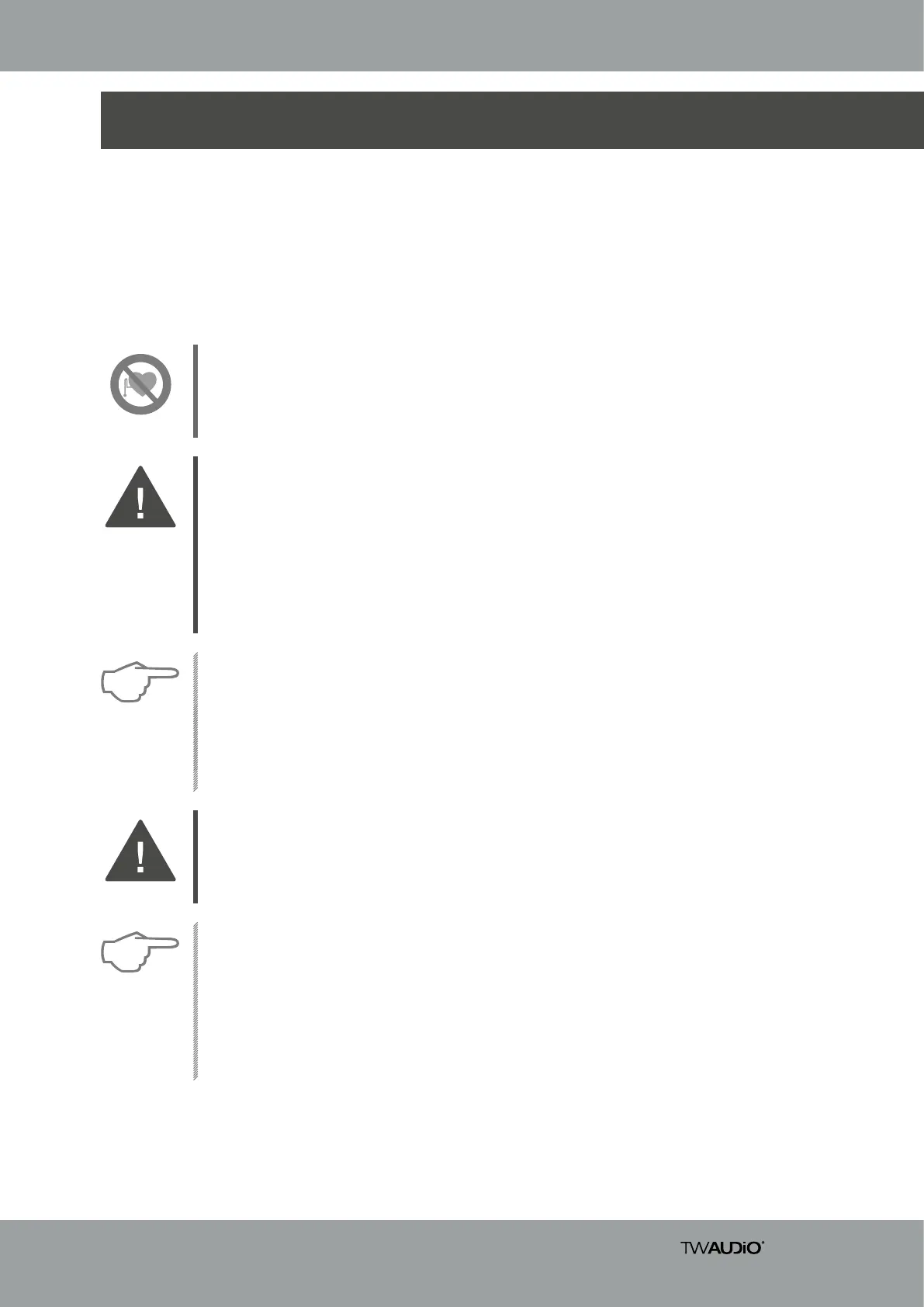 When using and assembling TW AUDiO loudspeakers, only use materials specified by