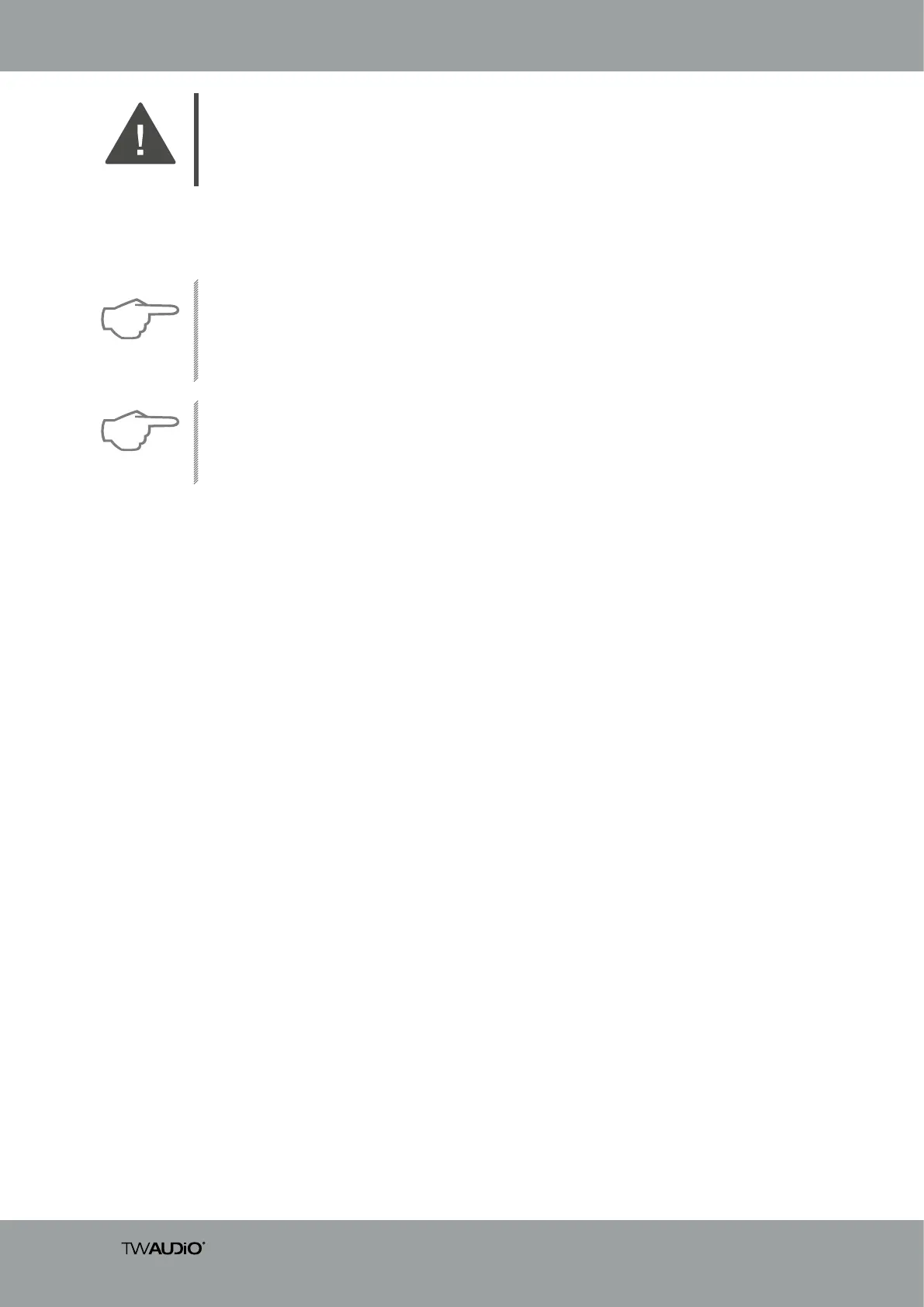Note that TW AUDiO does not provide a warranty for damage that can be attributed to this