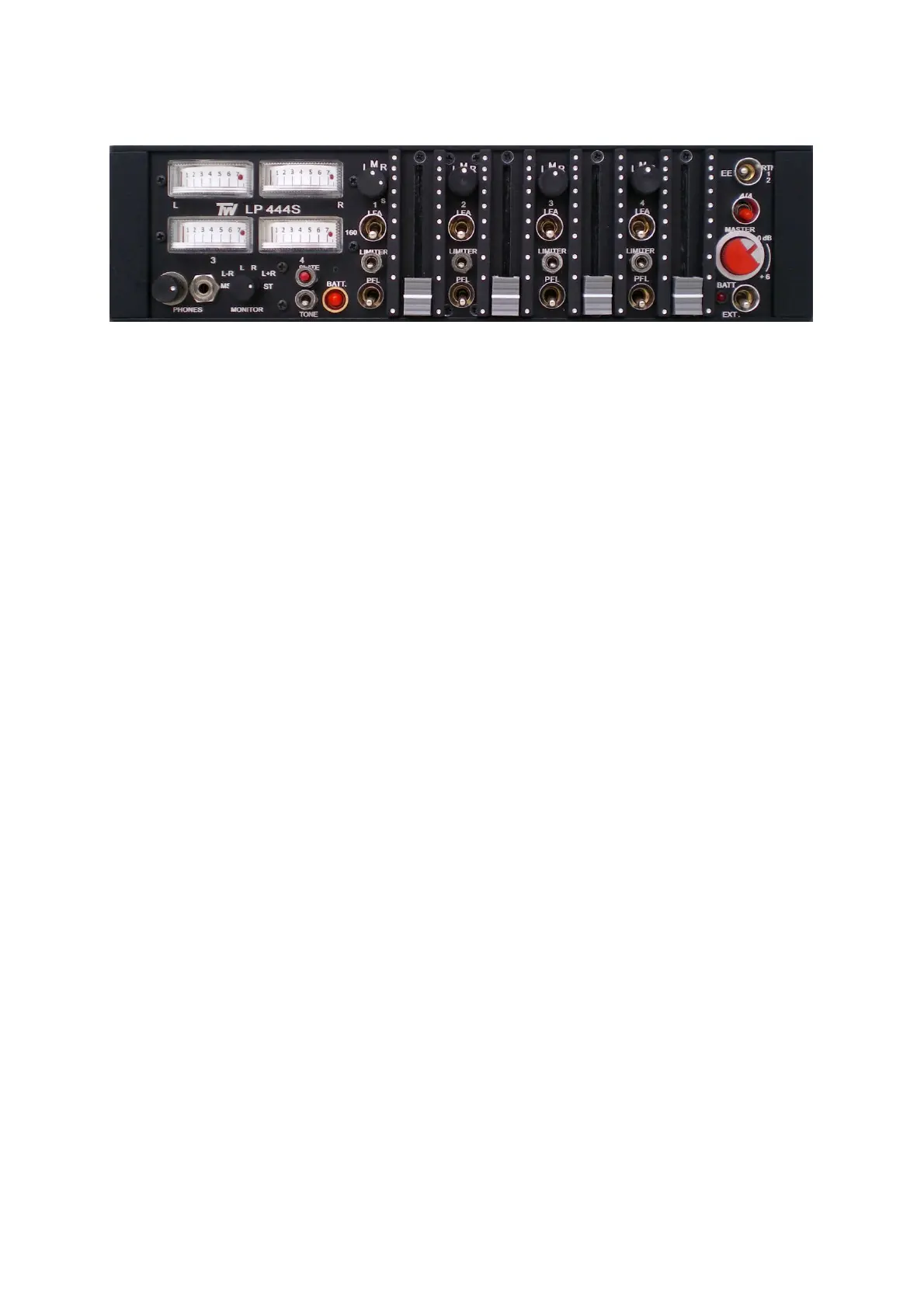 4 / 4 switch – The TW LP444s mixer works in stereo mode when this switch is turned down. Turned