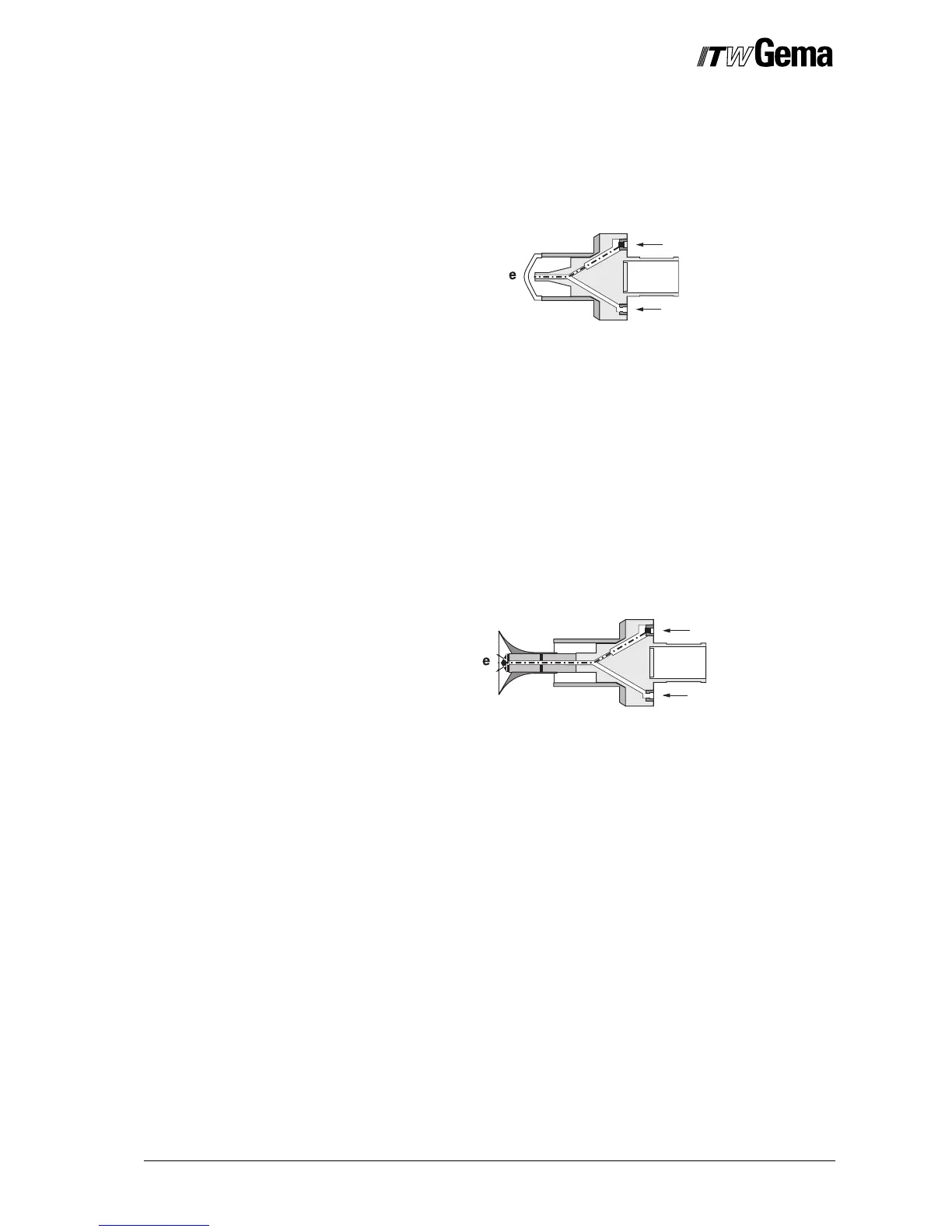 The vented flat jet nozzle serves for atomizing and charging of the pow-