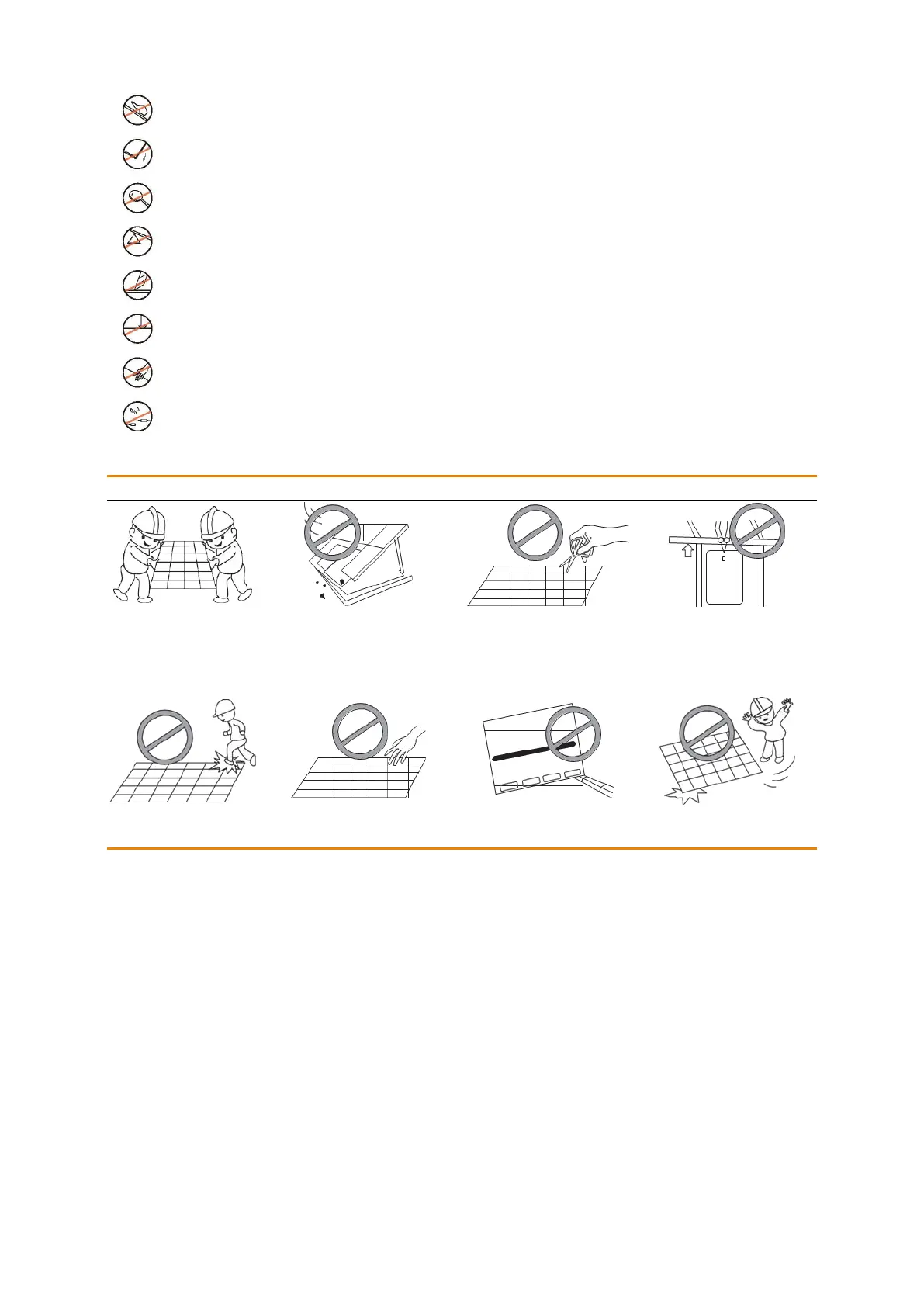 Do not directly apply pressure on the glass surface or backsheet of Modules.