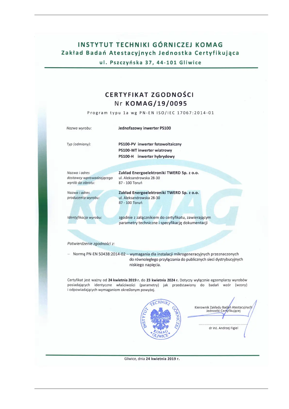 TWERD Power Electronics PS100-PV - Appendix B: PN-EN 50438:2014-02 Declaration of Conformity