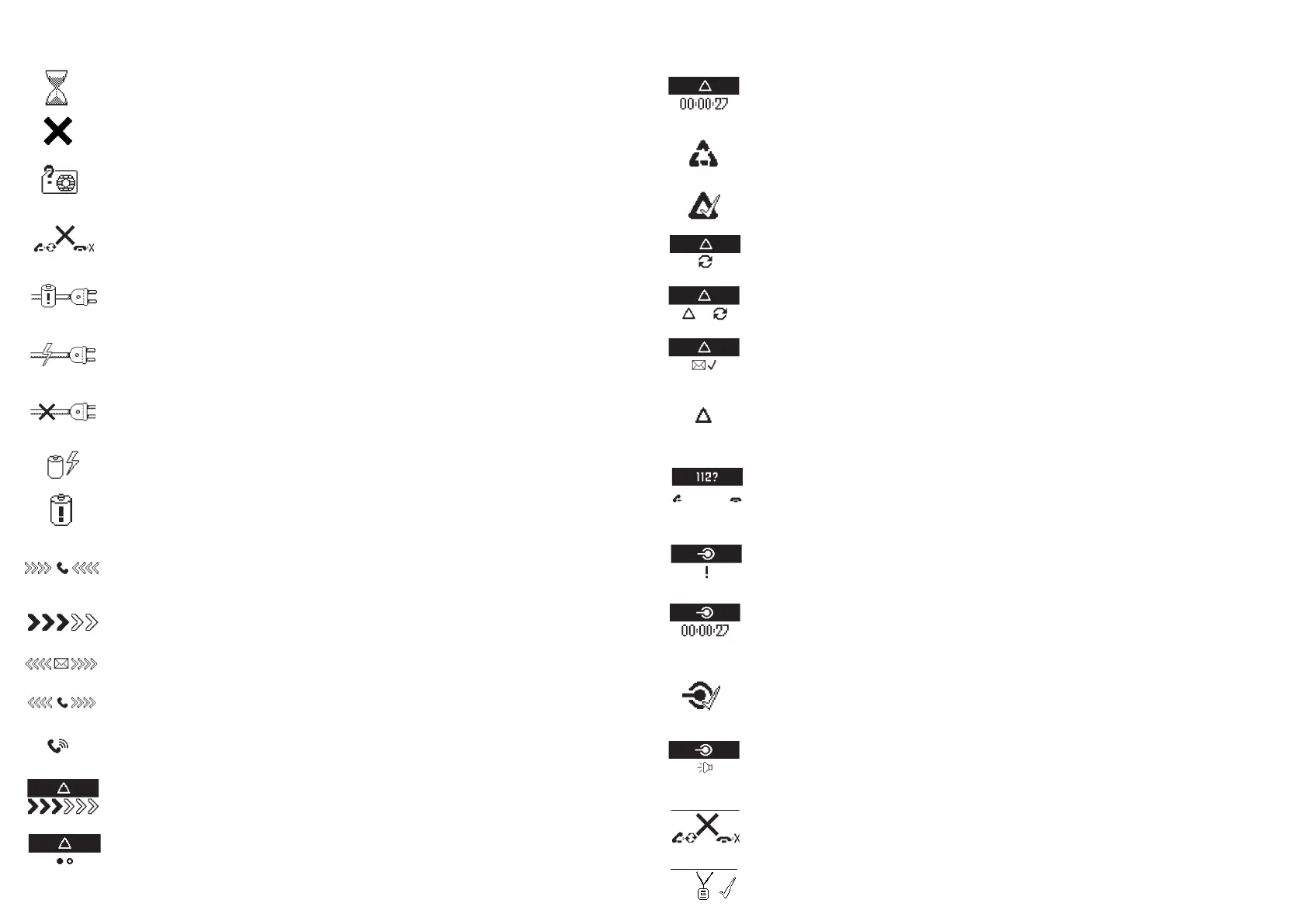 Battery is too low to charge. This symbol is displayed when initial charging of empty battery