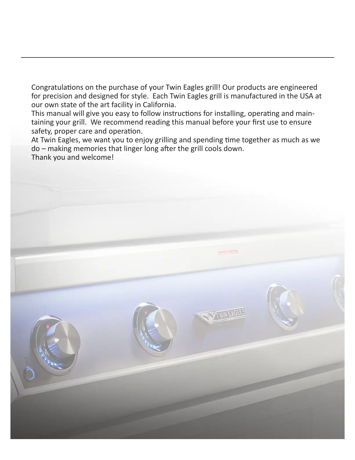 Congratulaons on the purchase of your Twin Eagles grill! Our products are engineered