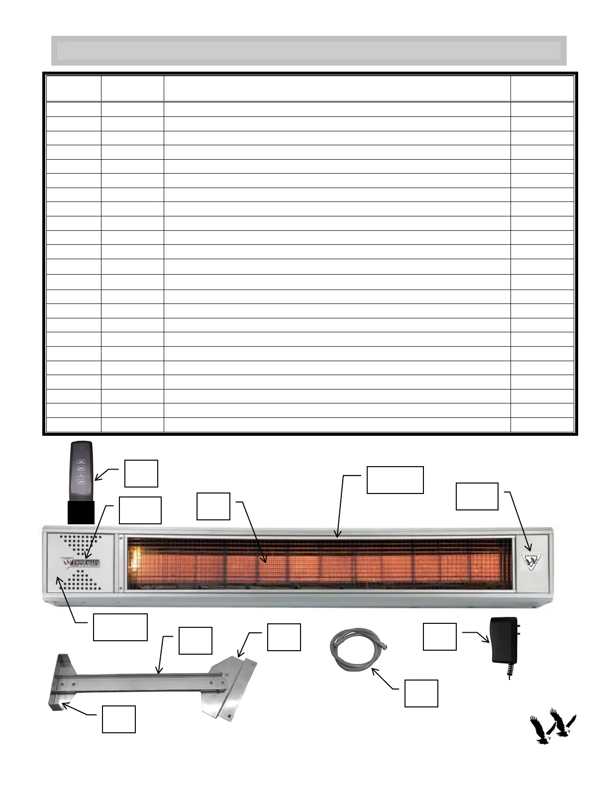 REPLACEMENT PARTS LIST – GAS INFRARED HEATER
