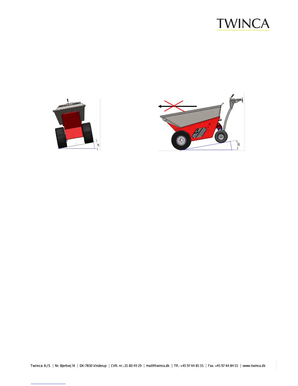 Twinca e800 - Terrain Driving Guidelines; Gradient Limits and Downhill Driving