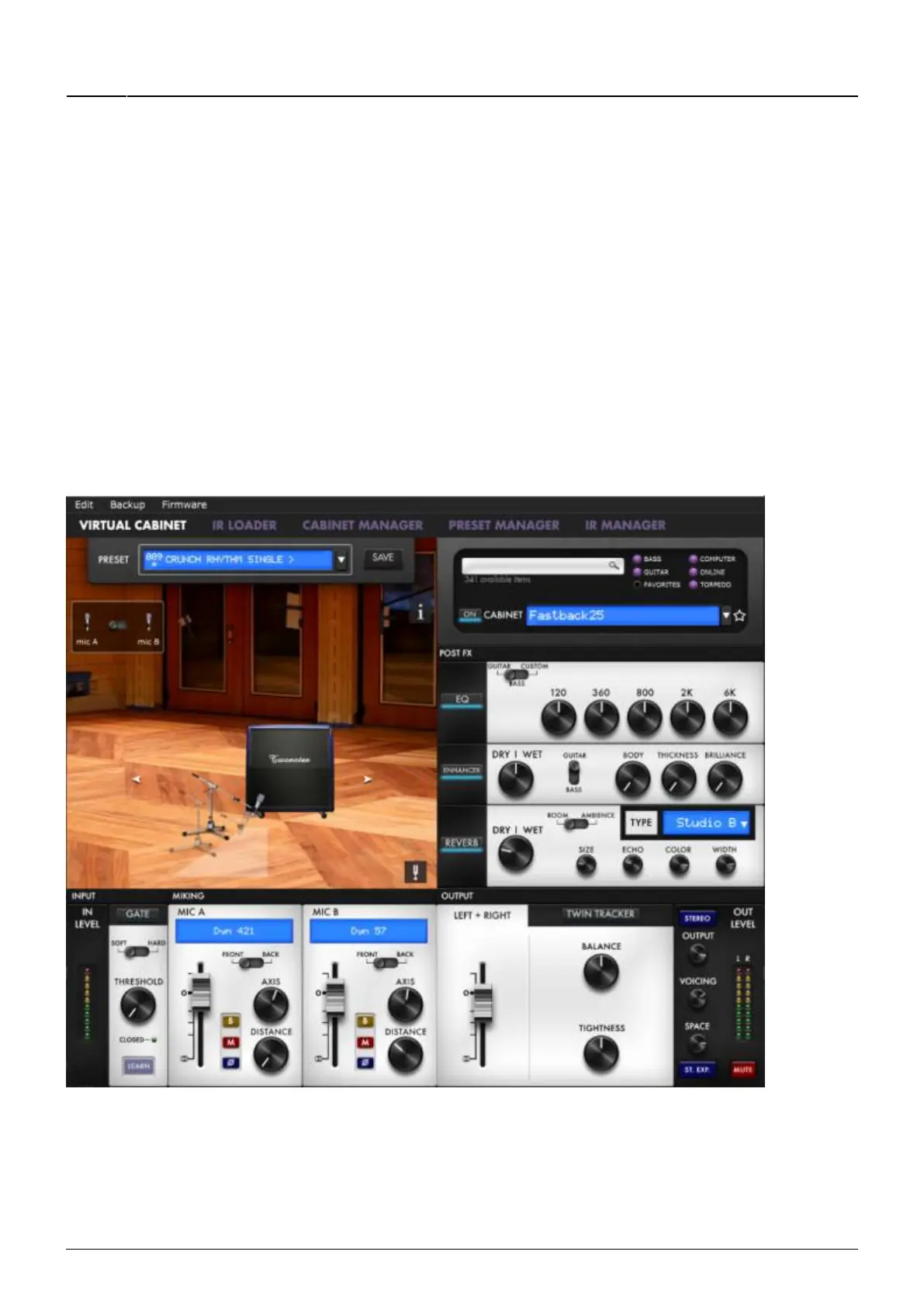 cabinets, as well as exclusive presets. IR Loader is for the use of 3rd party IRs in .wav format. Both