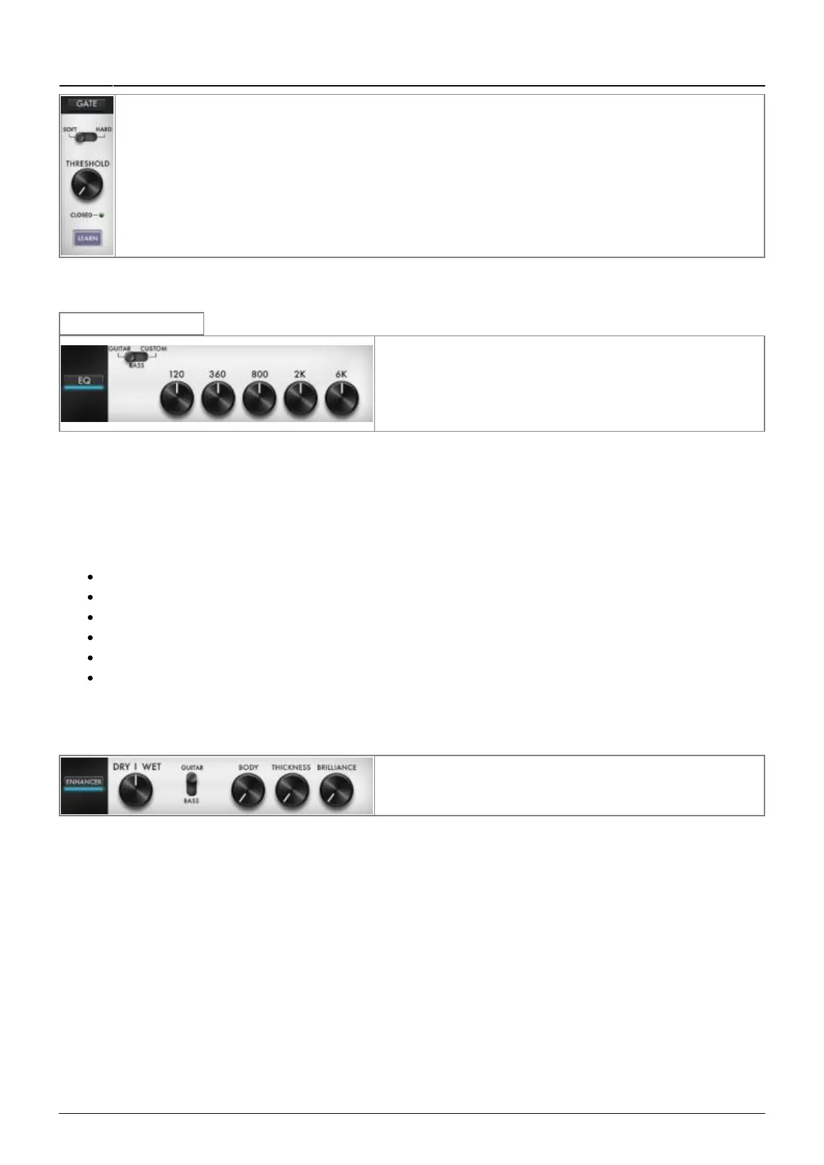under, the noise gate is active. The Learn button automatically sets the Threshold level.