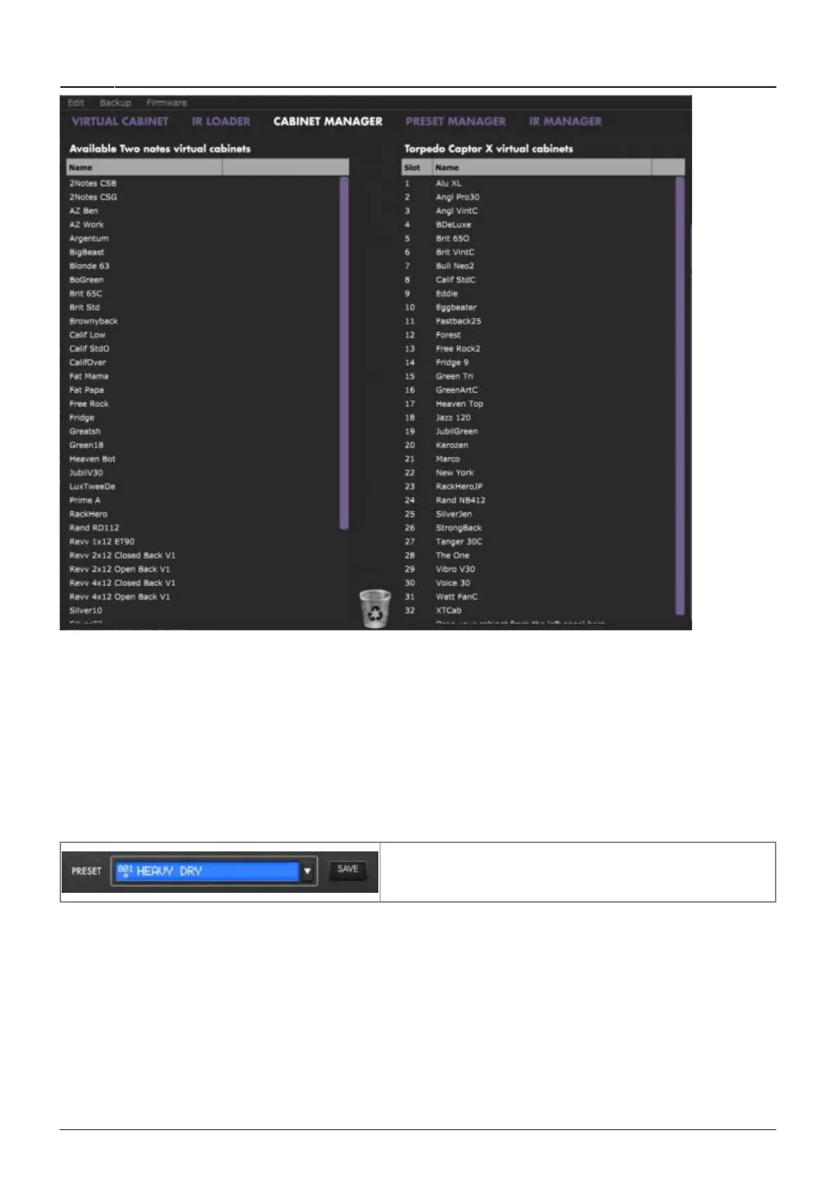 Use the PRESET MANAGER tab to manage the presets in Torpedo Captor X. The Left panel indicates