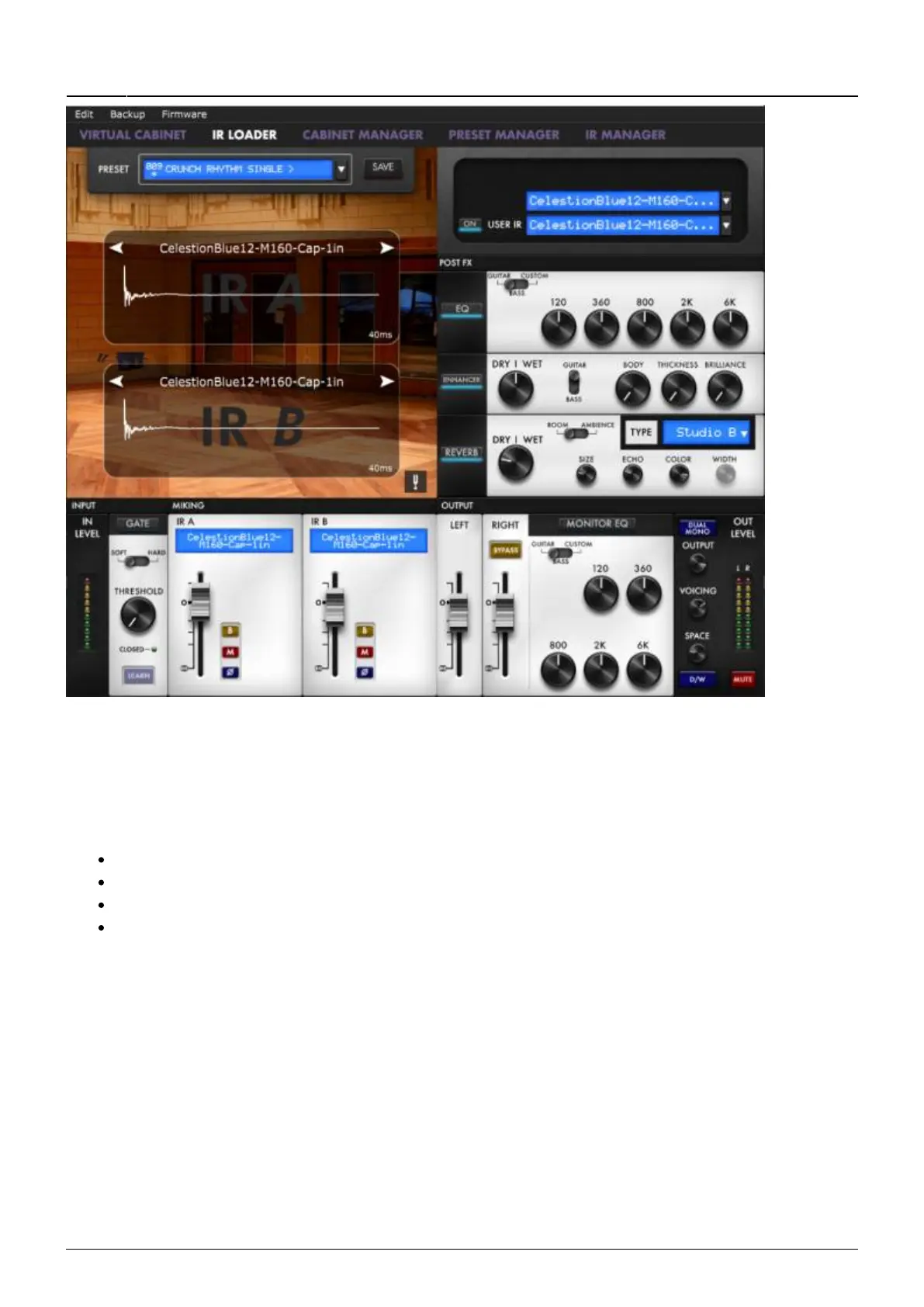 fader. You will then be able to shape the tone with the EQ, the Enhancer and the Reverb.
