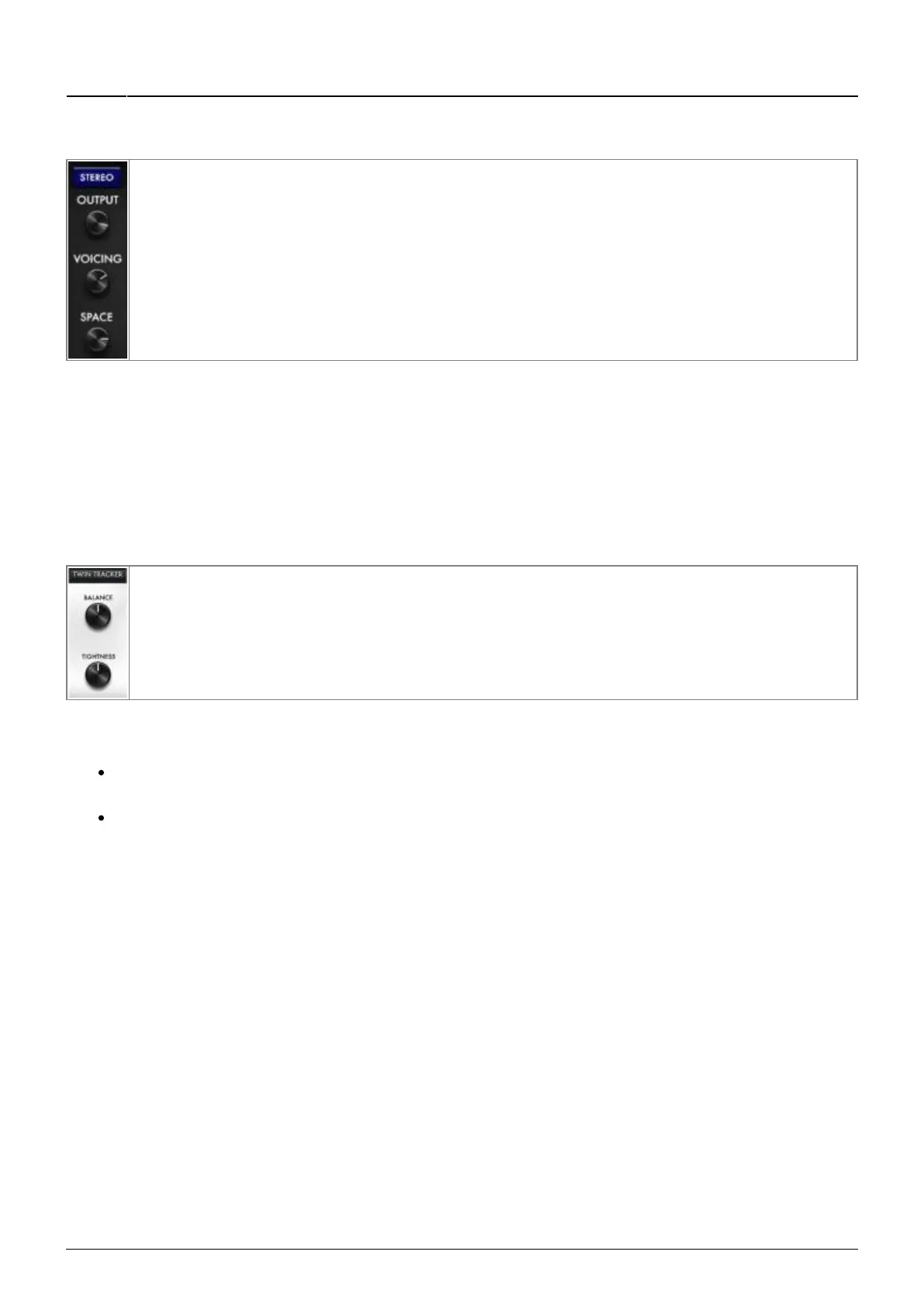 Balance: sets the level of the twin tracker. If turned all the way down, you will only hear the left