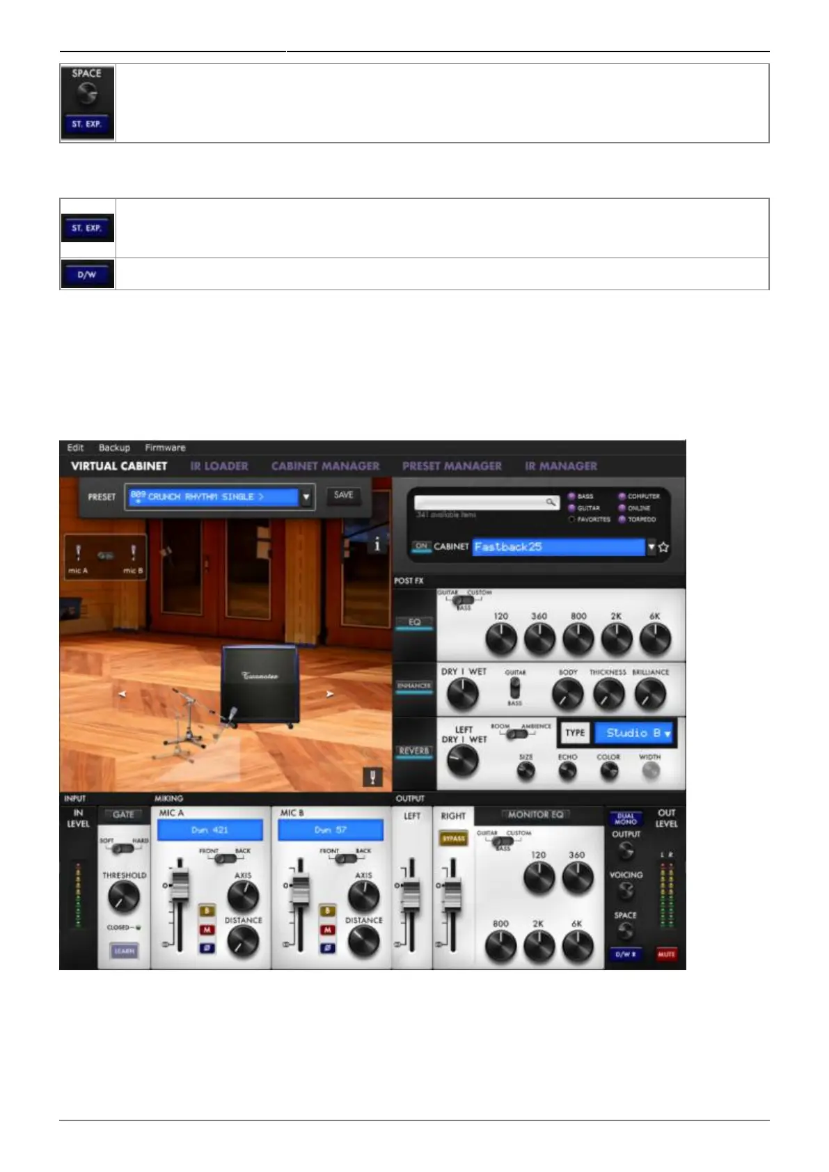different EQ and dry/wet reverb level to the right XLR output. The layout of the Torpedo Remote will
