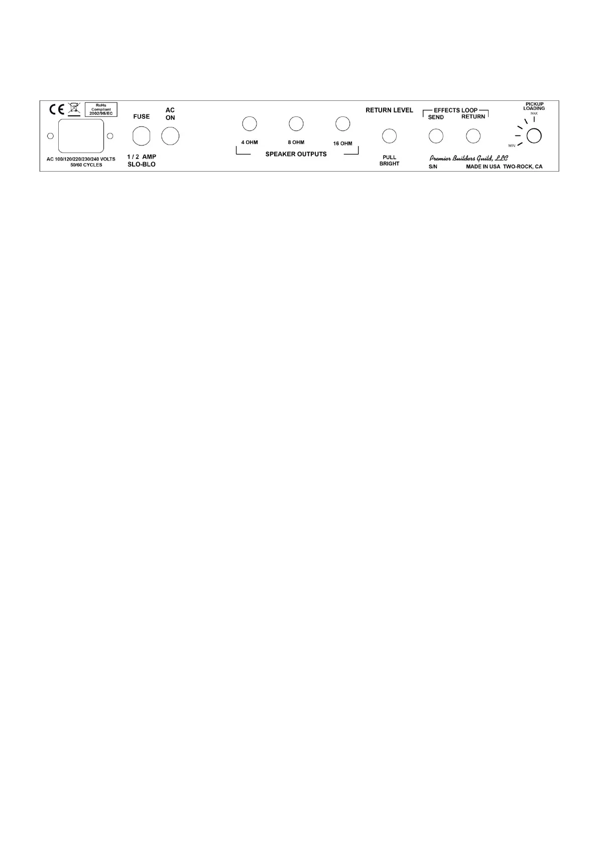 reference, set this control at 11:00 for unity gain when not using the effects loop. The pull-bright