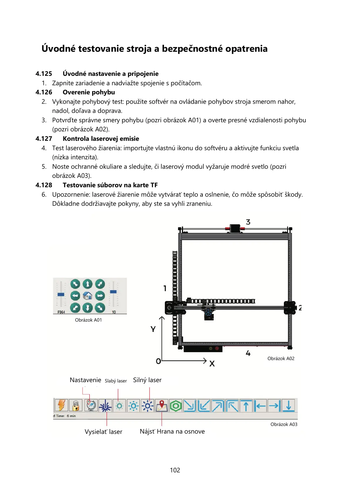Úvodné testovanie stroja a bezpečnostné opatrenia
