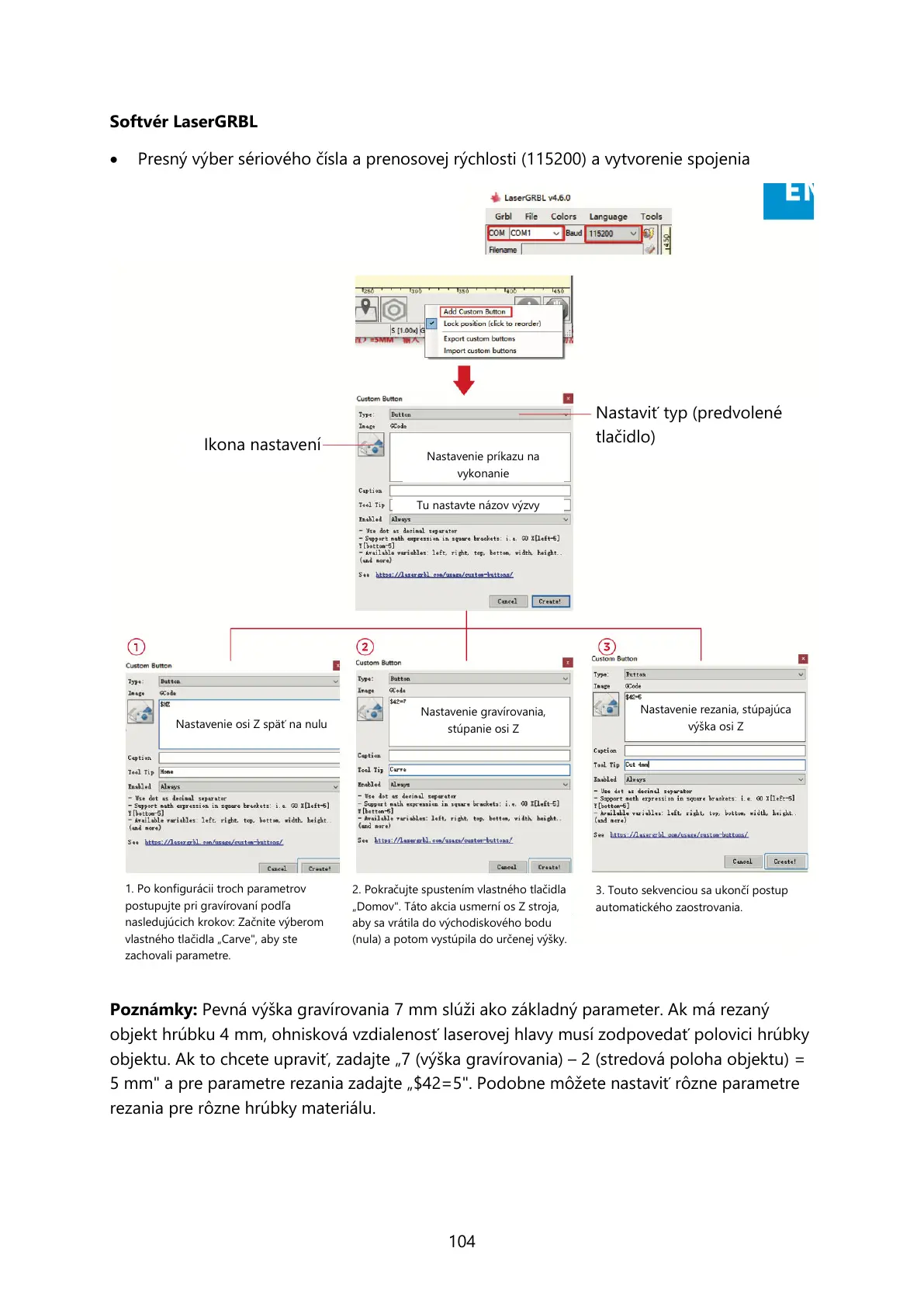 Poznámky: Pevná výška gravírovania 7 mm slúži ako základný parameter. Ak má rezaný