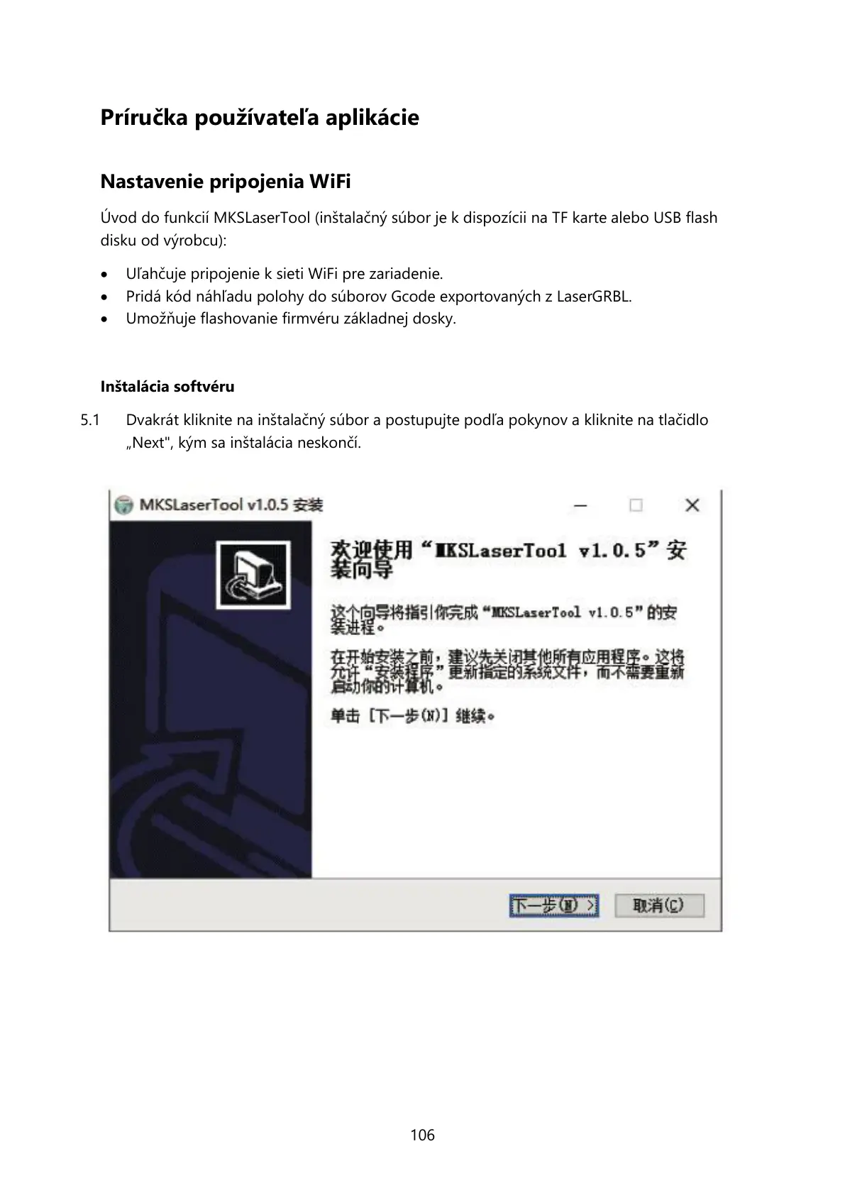 Úvod do funkcií MKSLaserTool (inštalačný súbor je k dispozícii na TF karte alebo USB flash