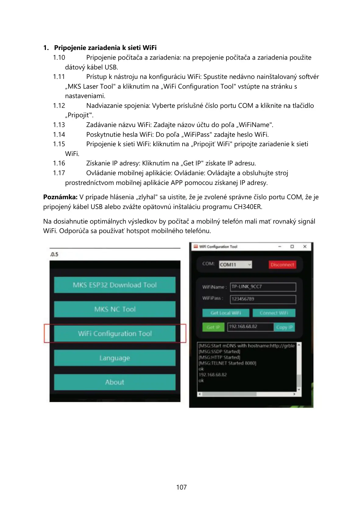„MKS Laser Tool" a kliknutím na „WiFi Configuration Tool" vstúpte na stránku s