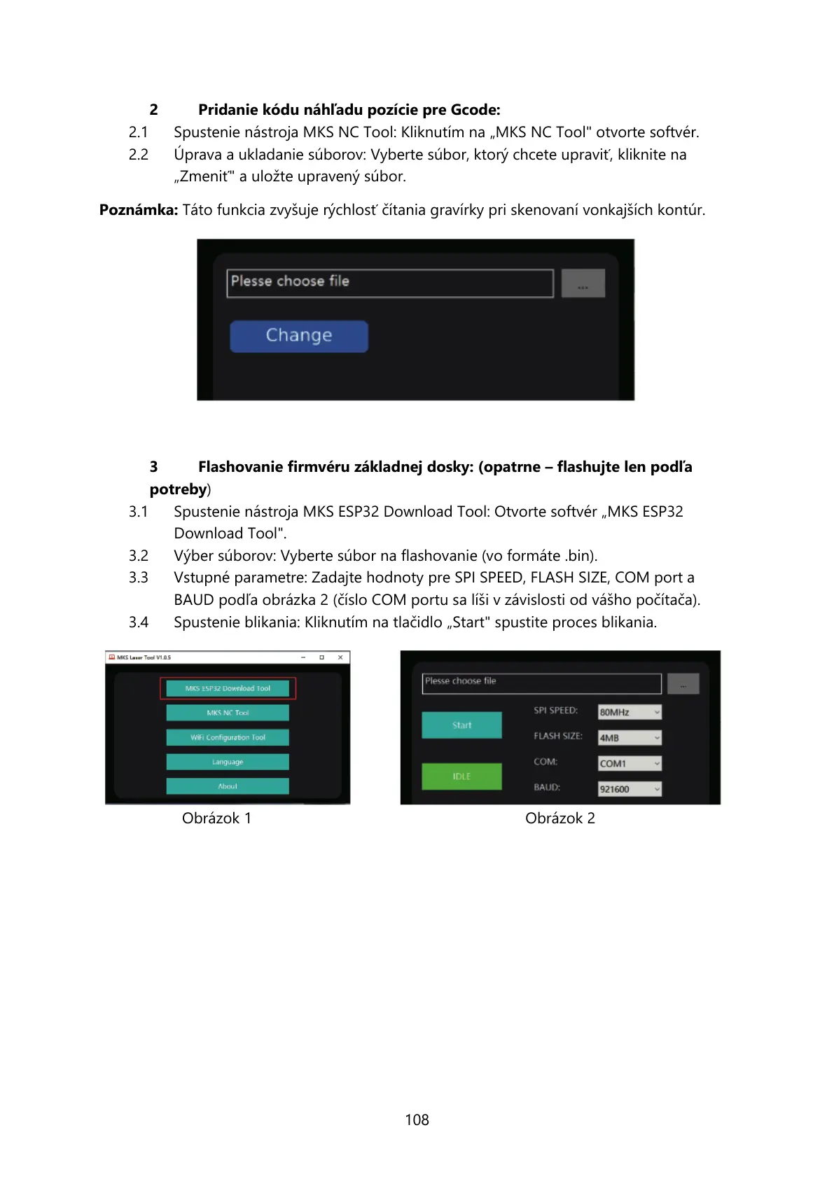 3.2 Výber súborov: Vyberte súbor na flashovanie (vo formáte .bin).