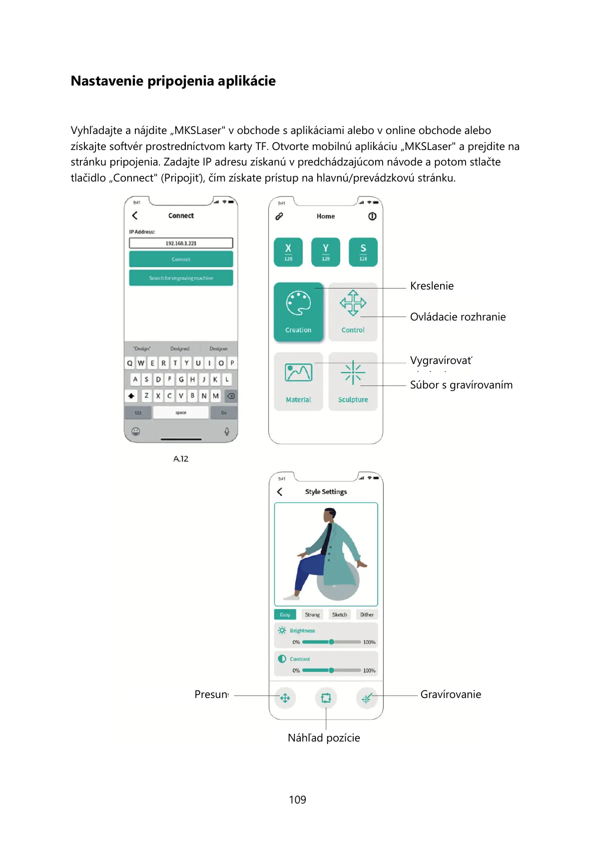 získajte softvér prostredníctvom karty TF. Otvorte mobilnú aplikáciu „MKSLaser" a prejdite na