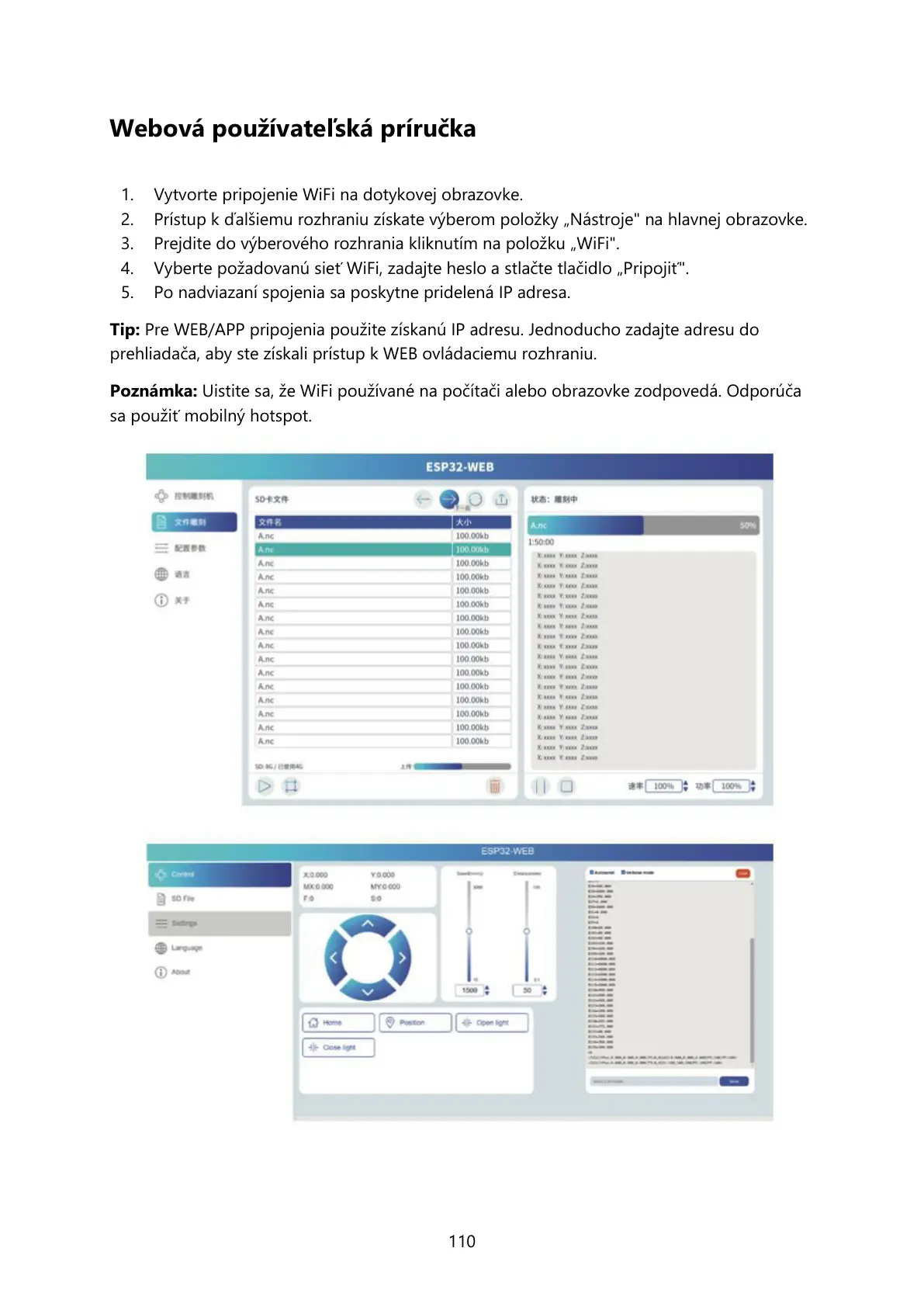 Tip: Pre WEB/APP pripojenia použite získanú IP adresu. Jednoducho zadajte adresu do