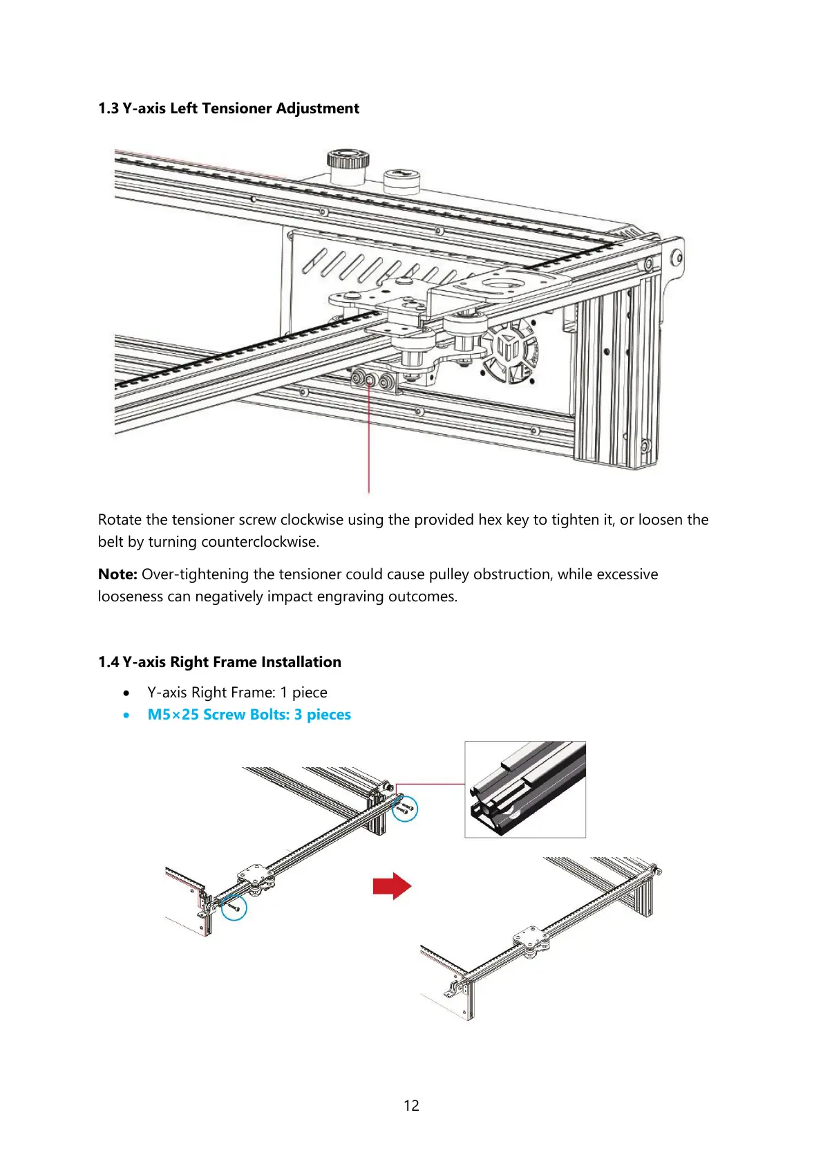 Note: Over-tightening the tensioner could cause pulley obstruction, while excessive