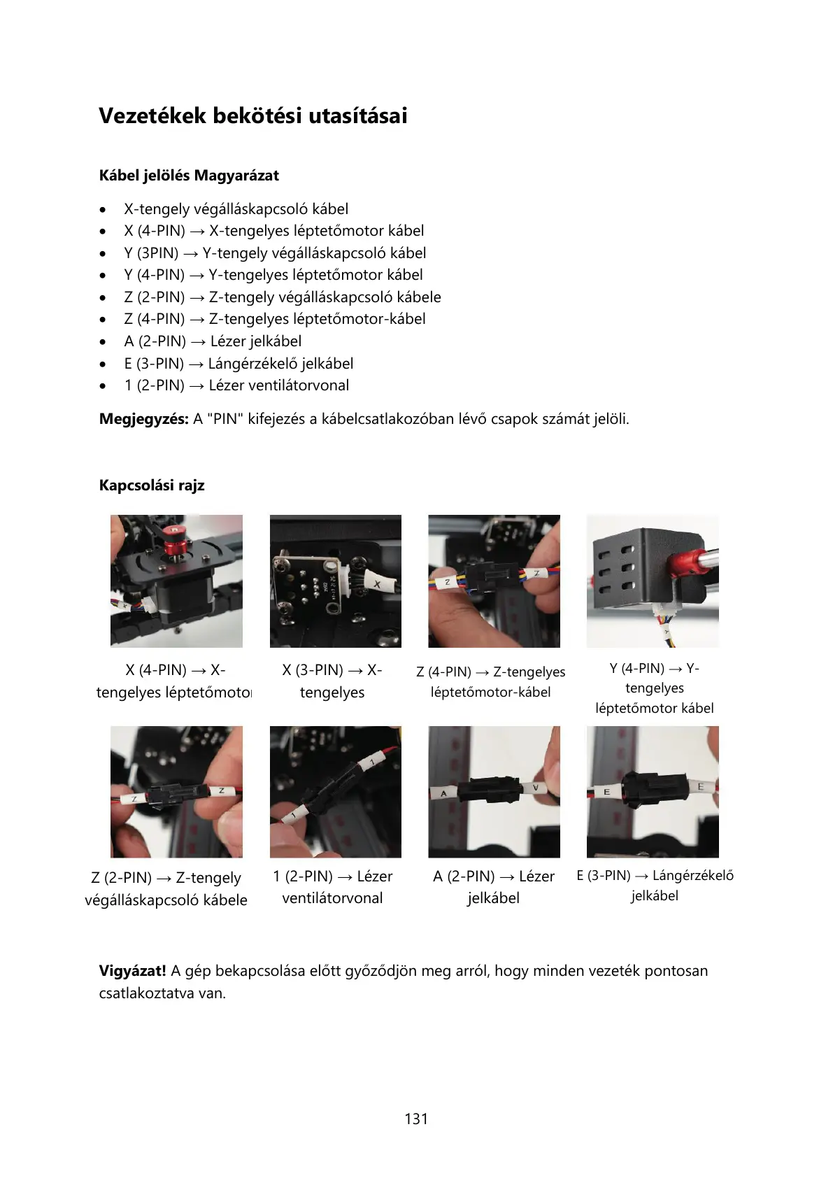 Vigyázat! A gép bekapcsolása előtt győződjön meg arról, hogy minden vezeték pontosan