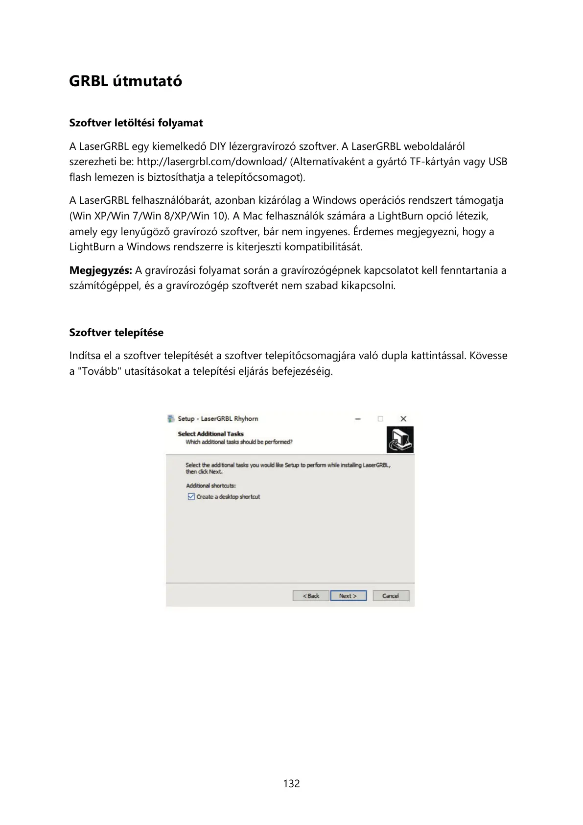 szerezheti be: http://lasergrbl.com/download/ (Alternatívaként a gyártó TF-kártyán vagy USB