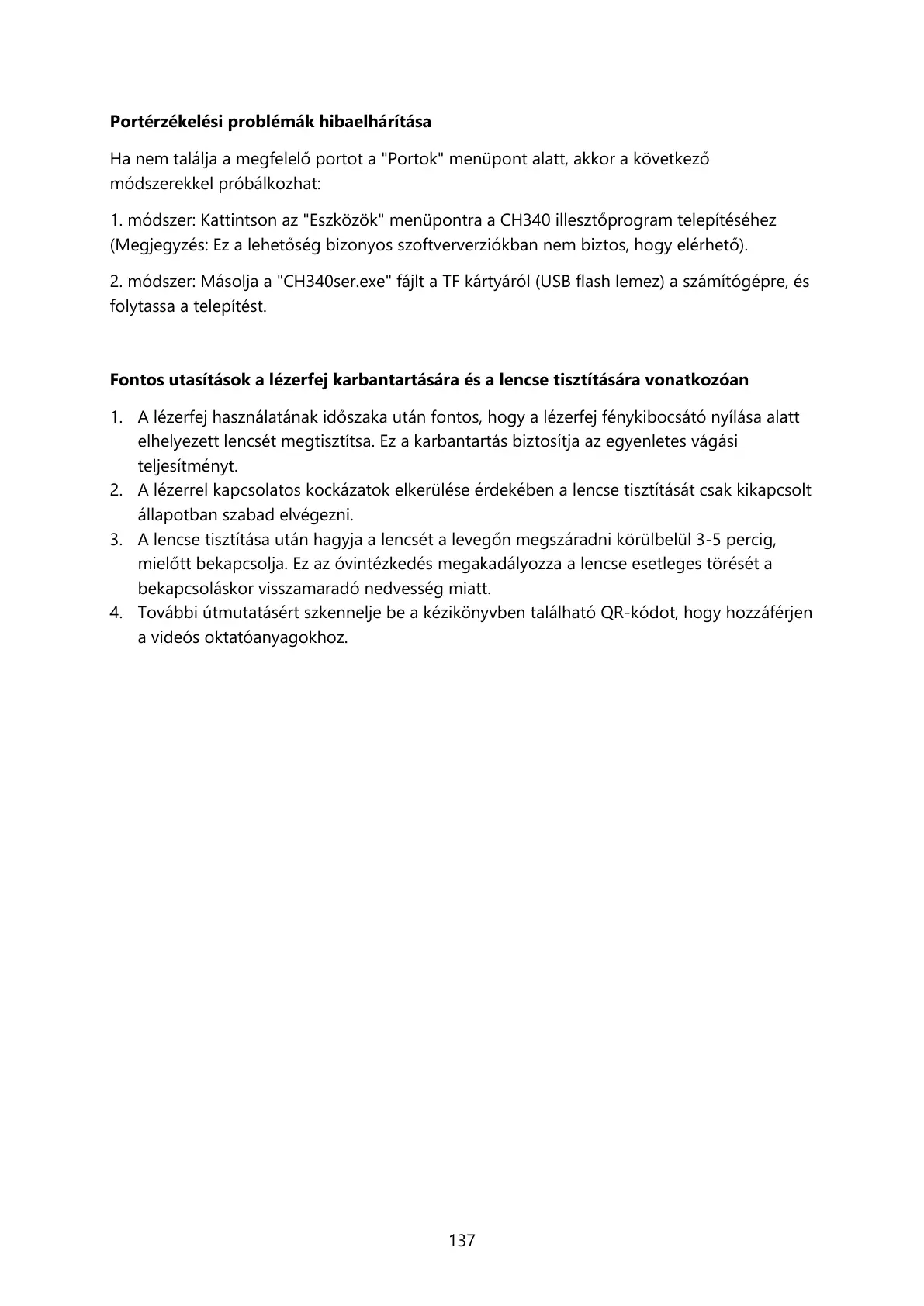 elhelyezett lencsét megtisztítsa. Ez a karbantartás biztosítja az egyenletes vágási