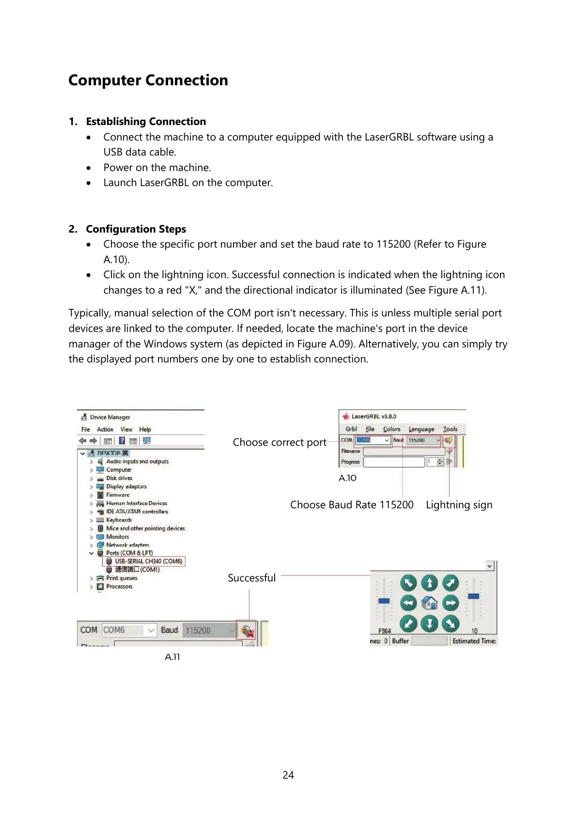 Connect the machine to a computer equipped with the LaserGRBL software using a