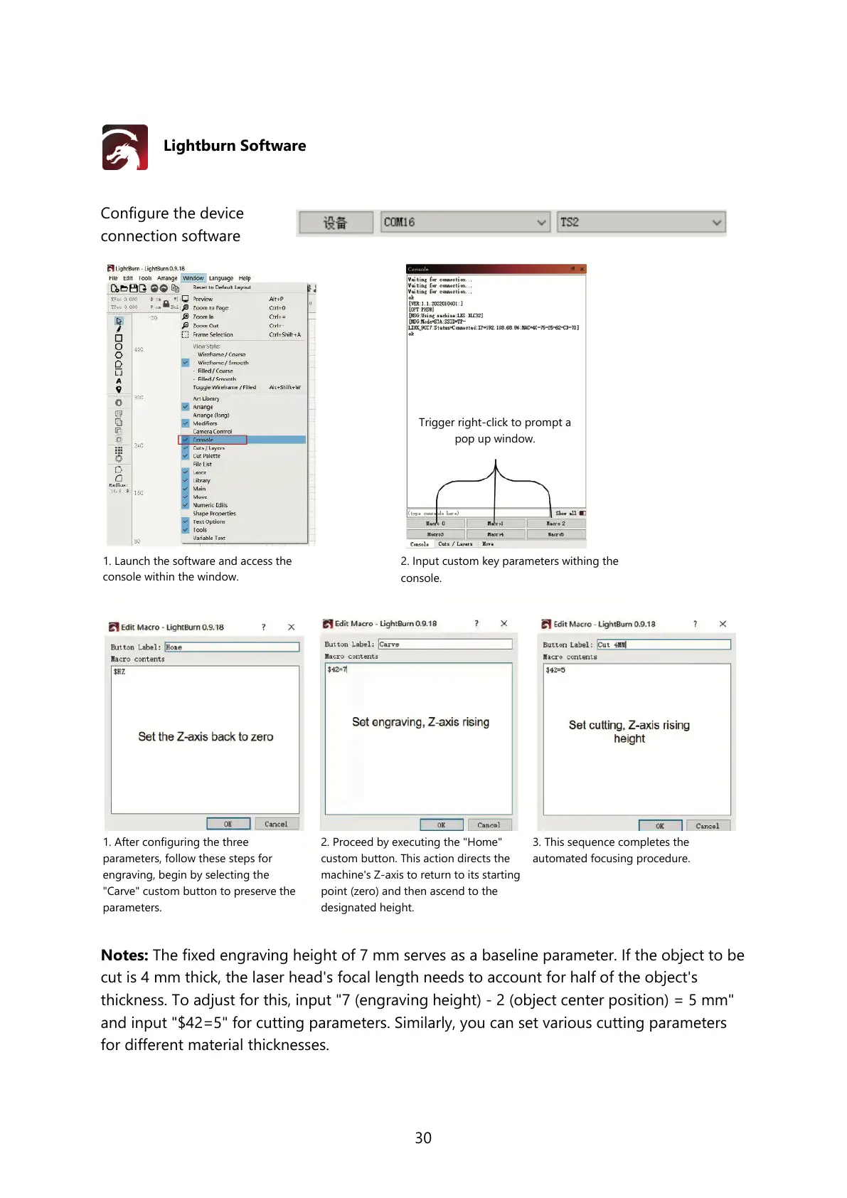 cut is 4 mm thick, the laser head's focal length needs to account for half of the object's