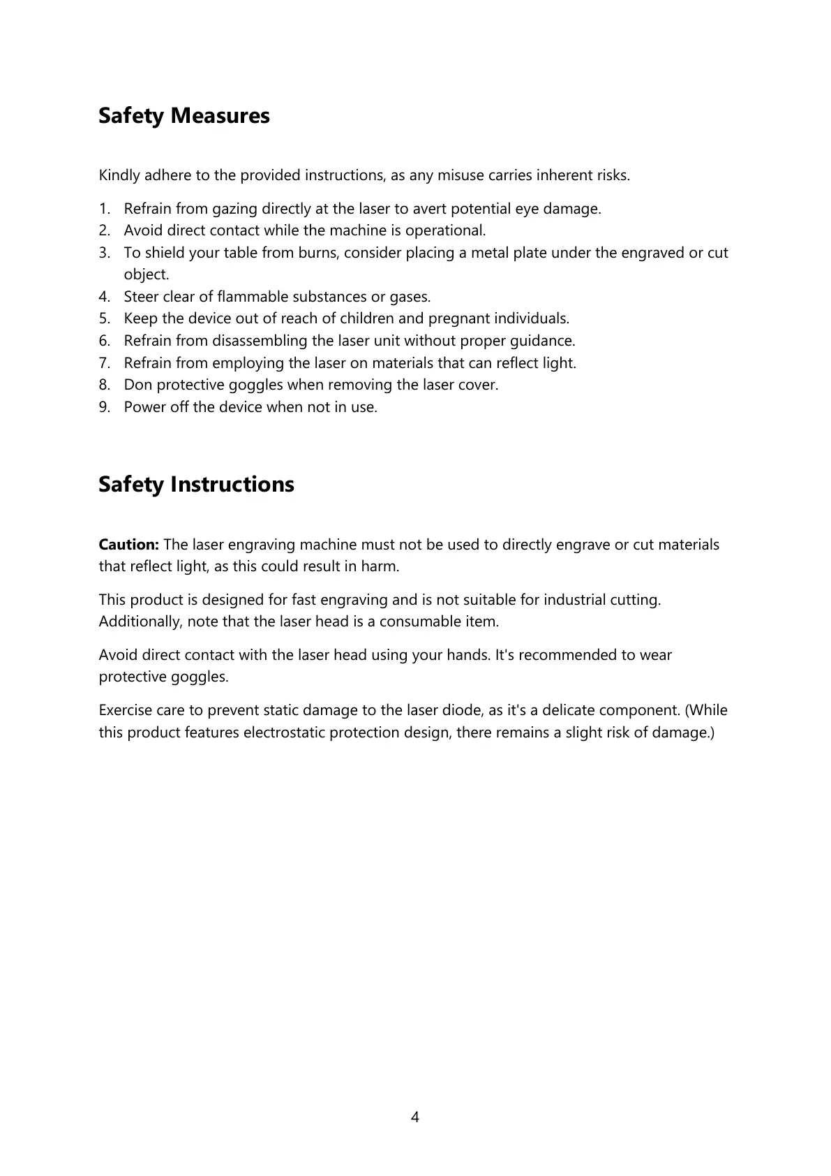 6. Refrain from disassembling the laser unit without proper guidance.