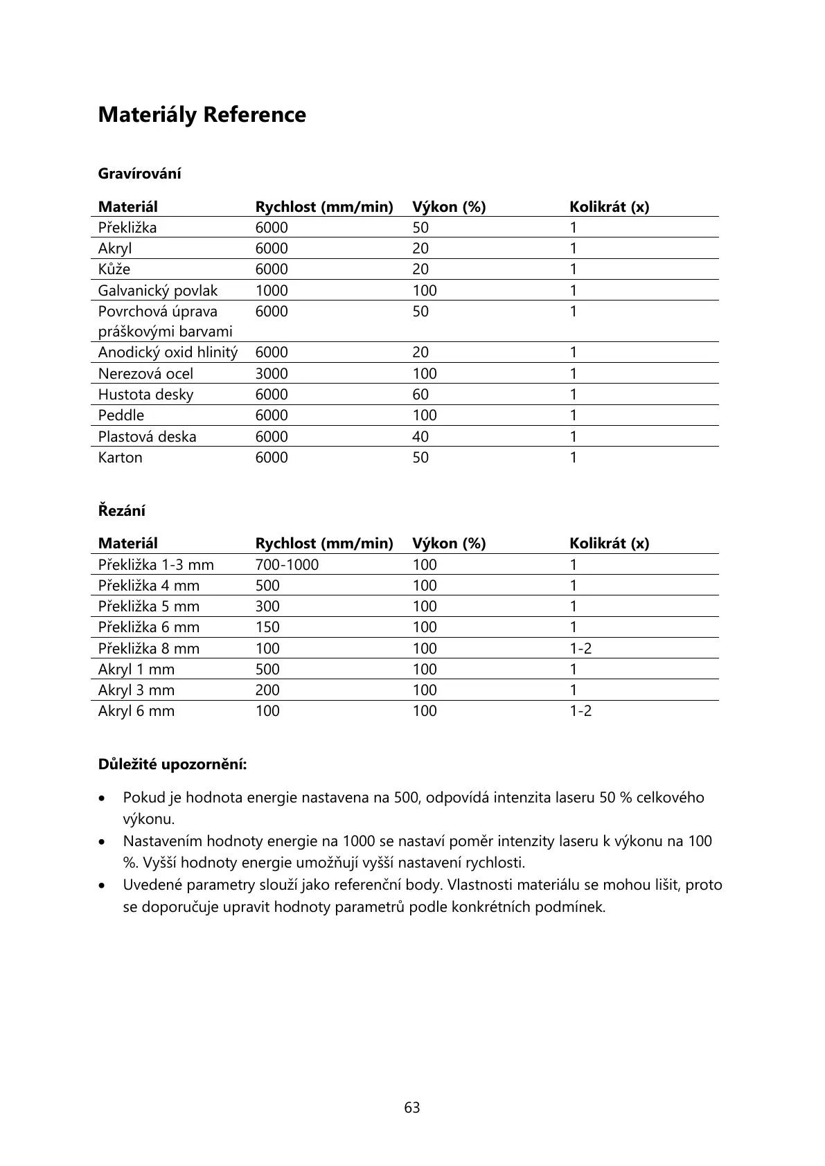 Uvedené parametry slouží jako referenční body. Vlastnosti materiálu se mohou lišit, proto
