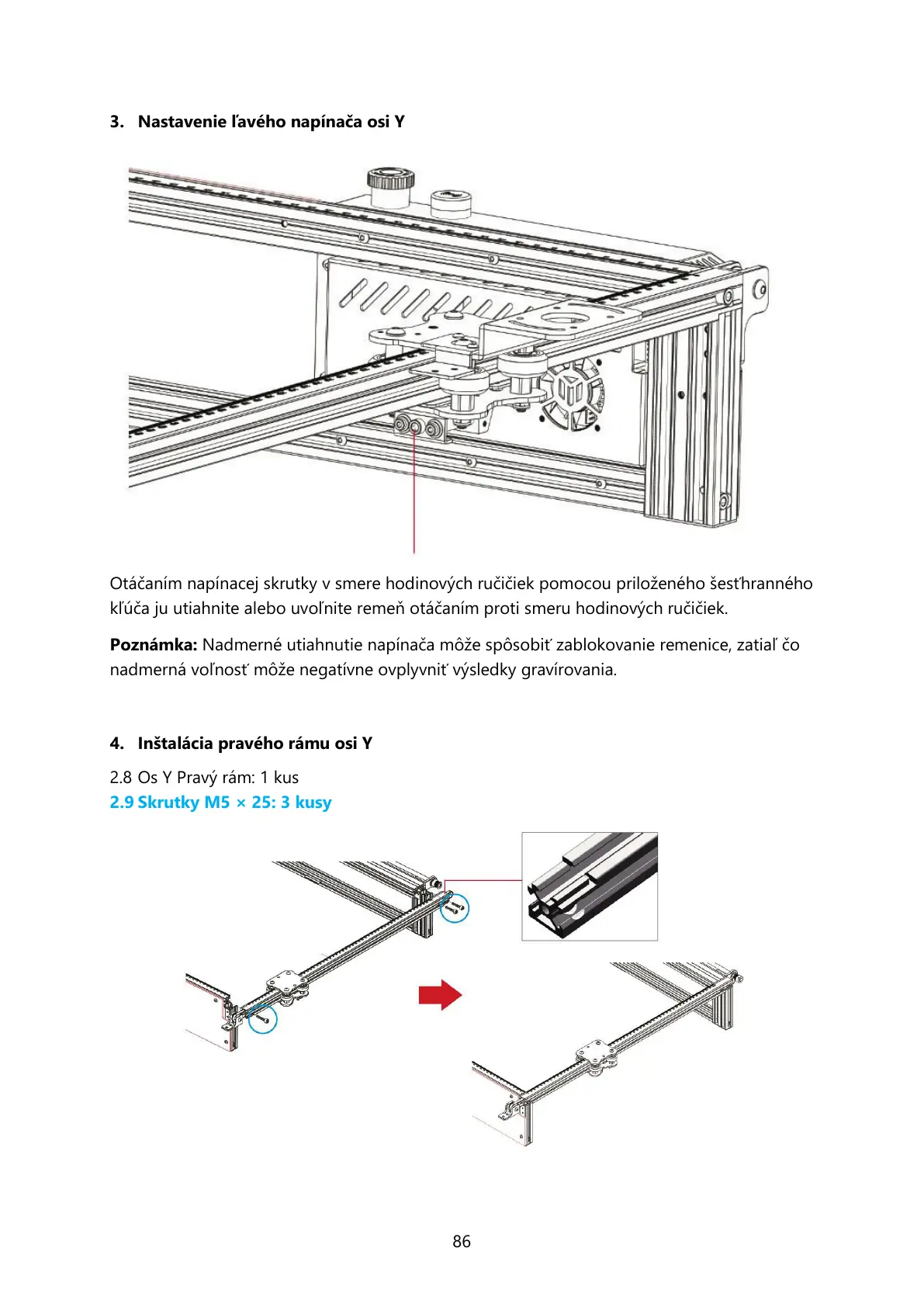 Otáčaním napínacej skrutky v smere hodinových ručičiek pomocou priloženého šesťhranného