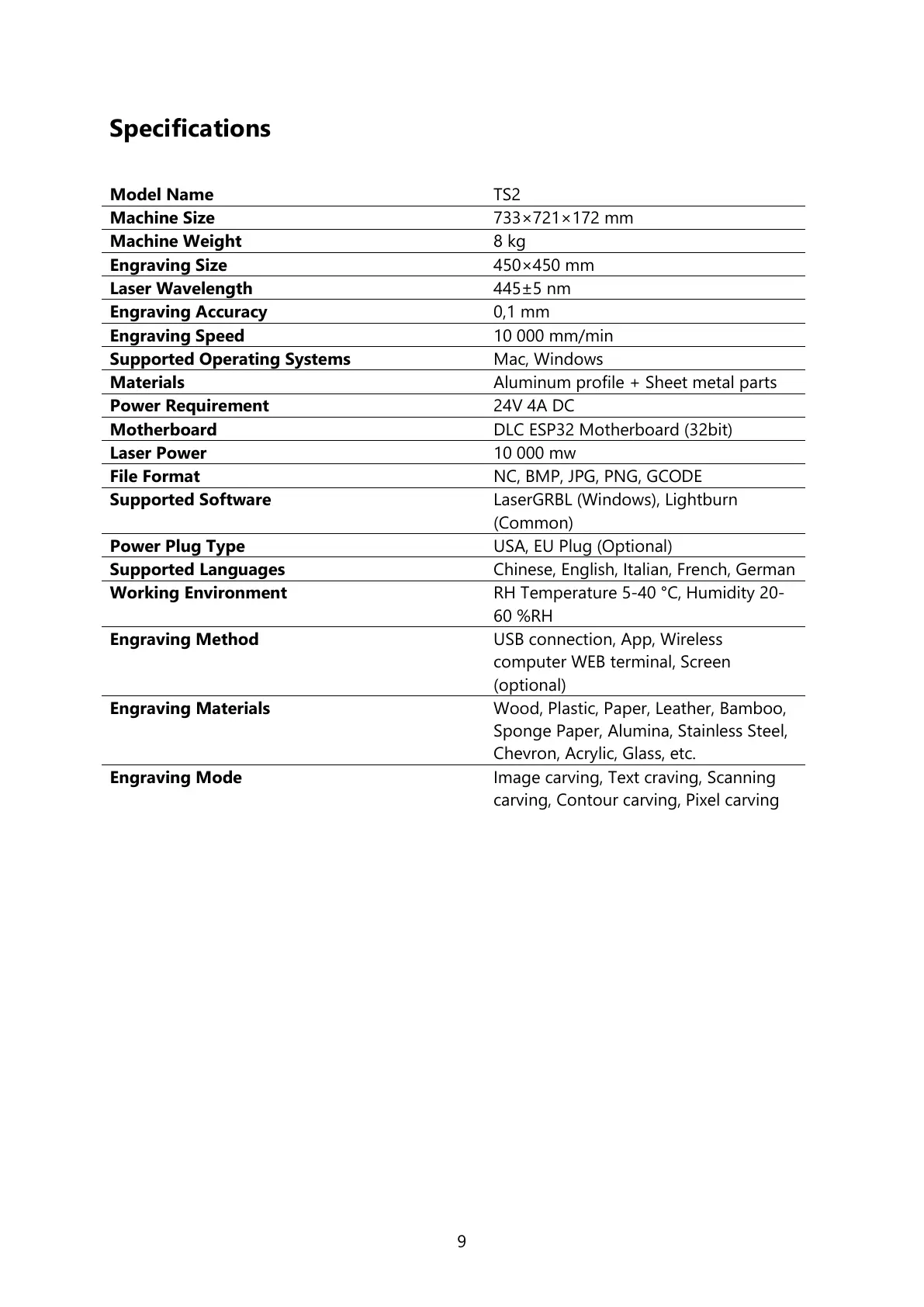 Specifications